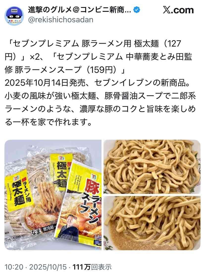 セブンイレブンから「豚ラーメン用 極太麺」「中華蕎麦とみ田監修 豚ラーメンスープ」が新登場!二郎系ラーメンの新商品