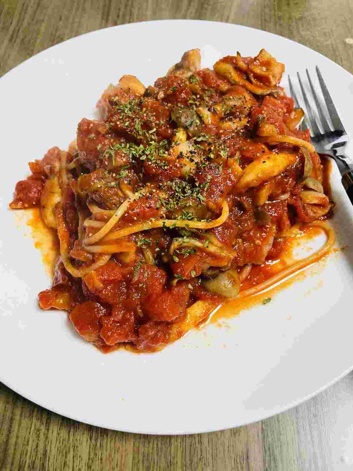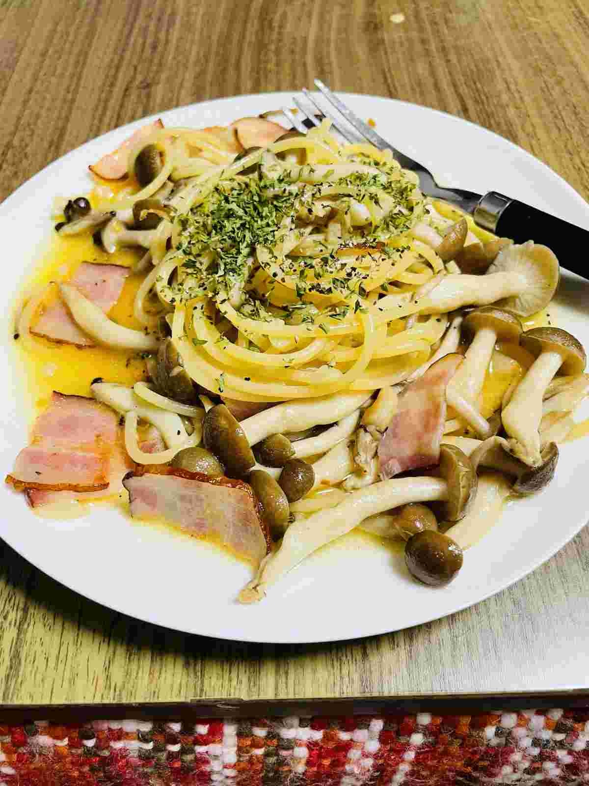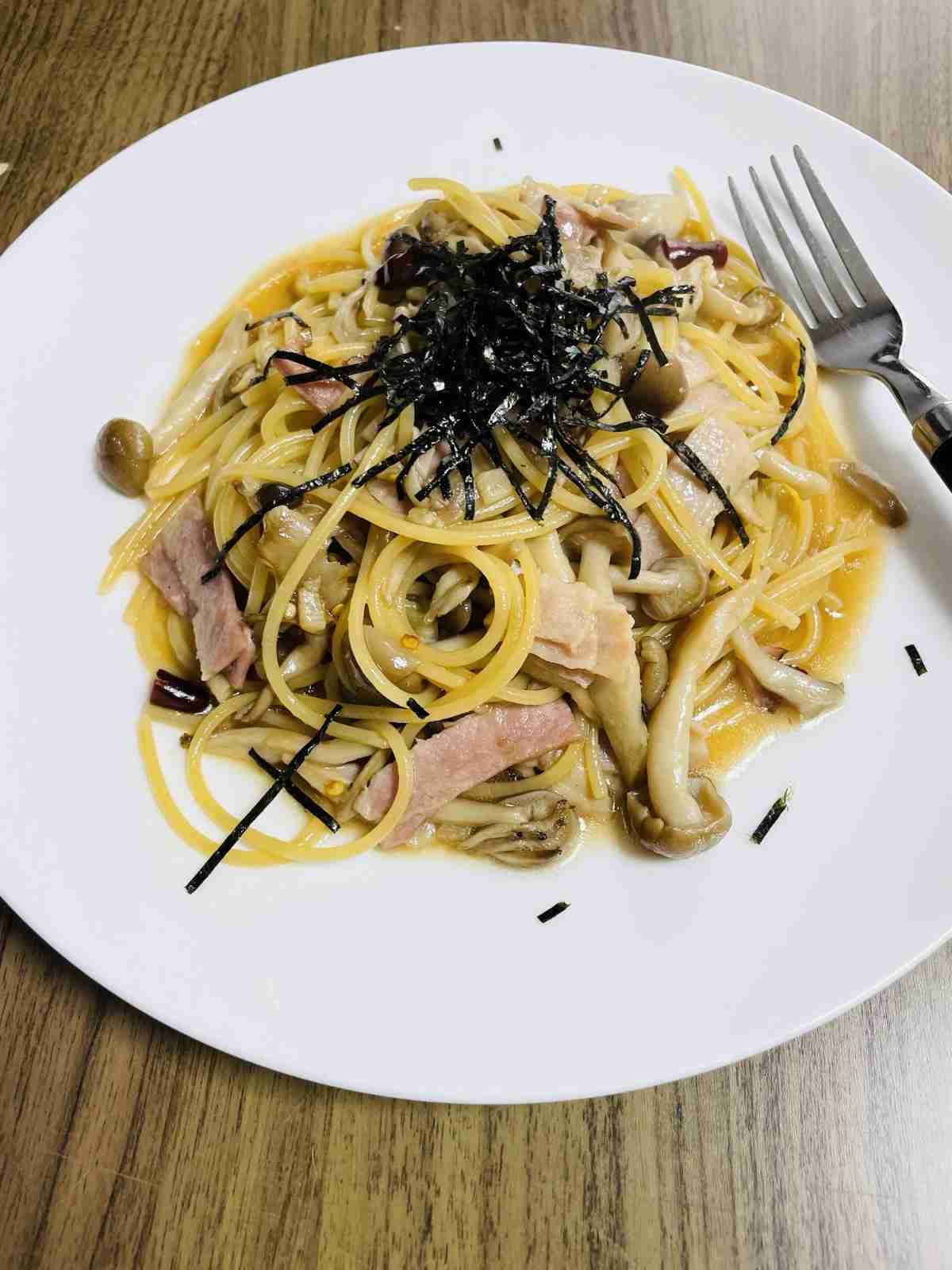(朝無糖紅茶、昼パスタ80g、夜ダイエット食)