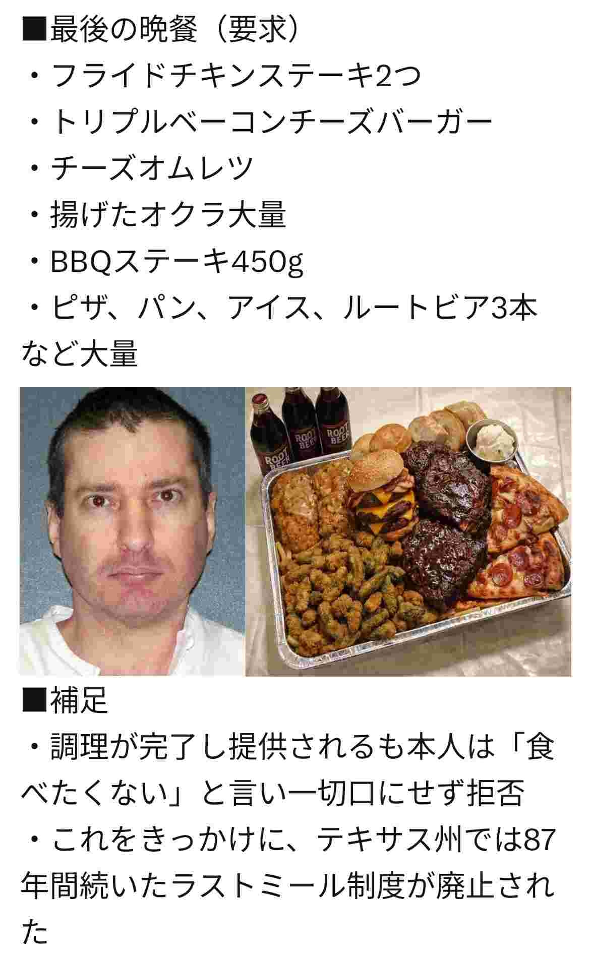 テキサス州、死刑囚が最後に好きなものを食べられる制度廃止…
