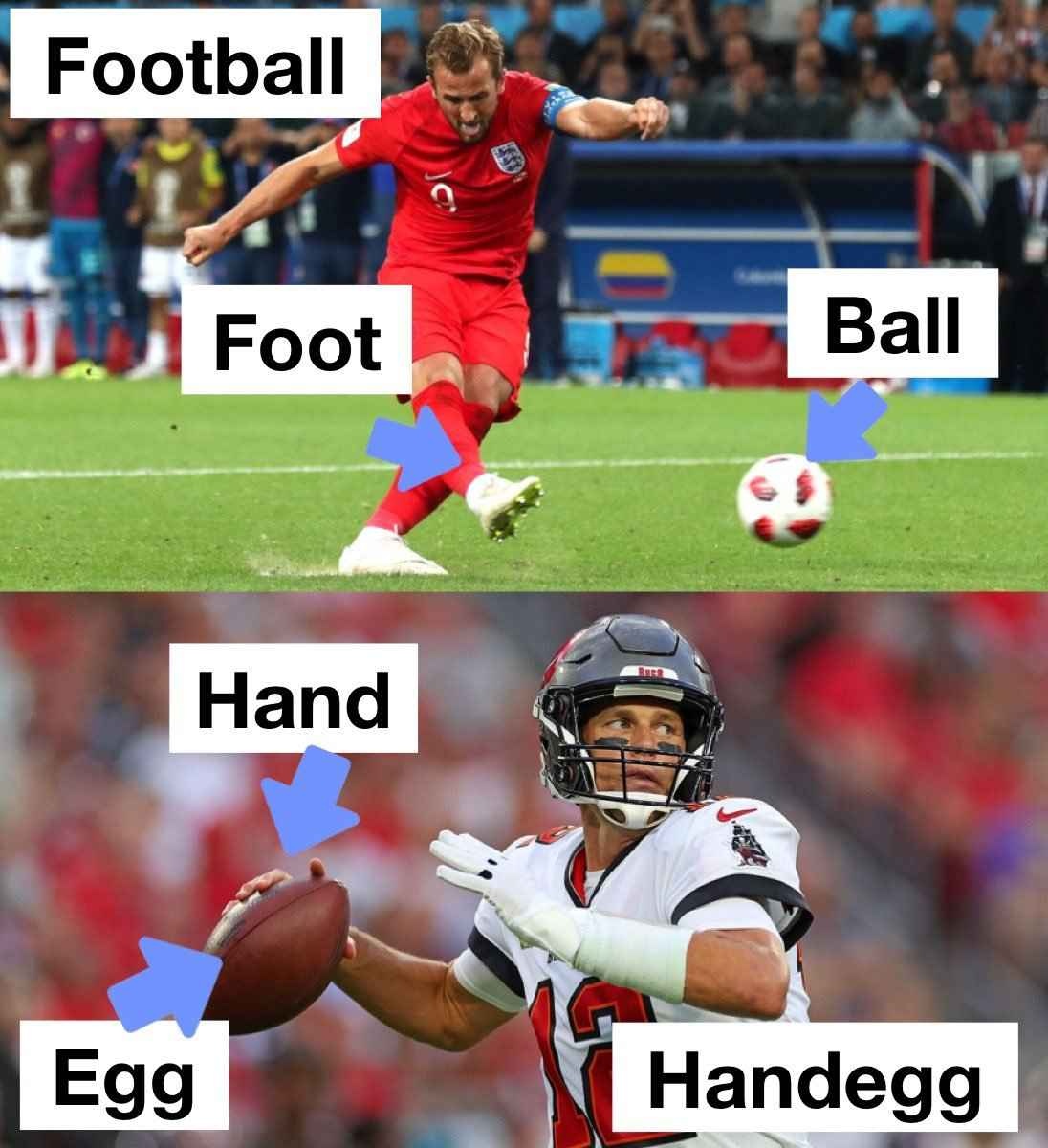 「フットボールと呼ばれる別の競技との間に少し矛盾があるが、よく考えてみれば、