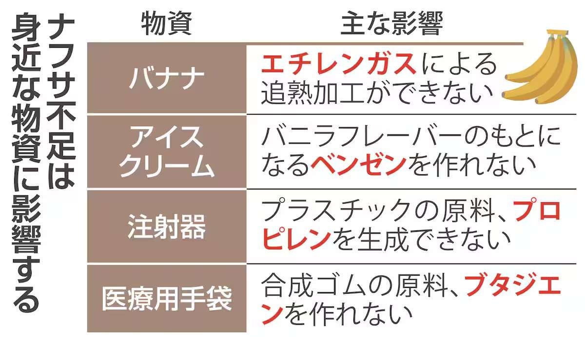ナフサ不足、意外な物資に余波 バナナ、アイス、チョコレート… 予防接種の注射器も