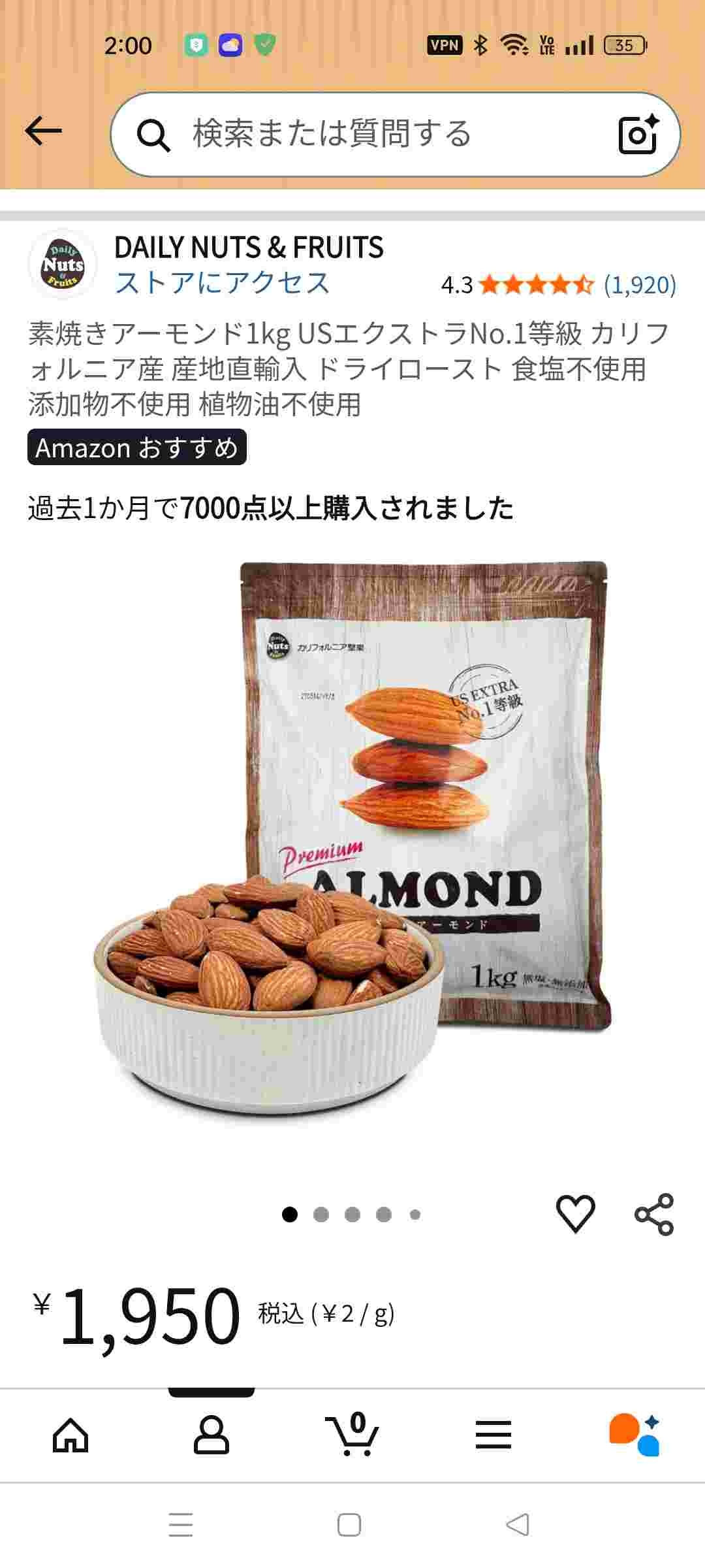 - アーモンド1kg 2000も無いと思う