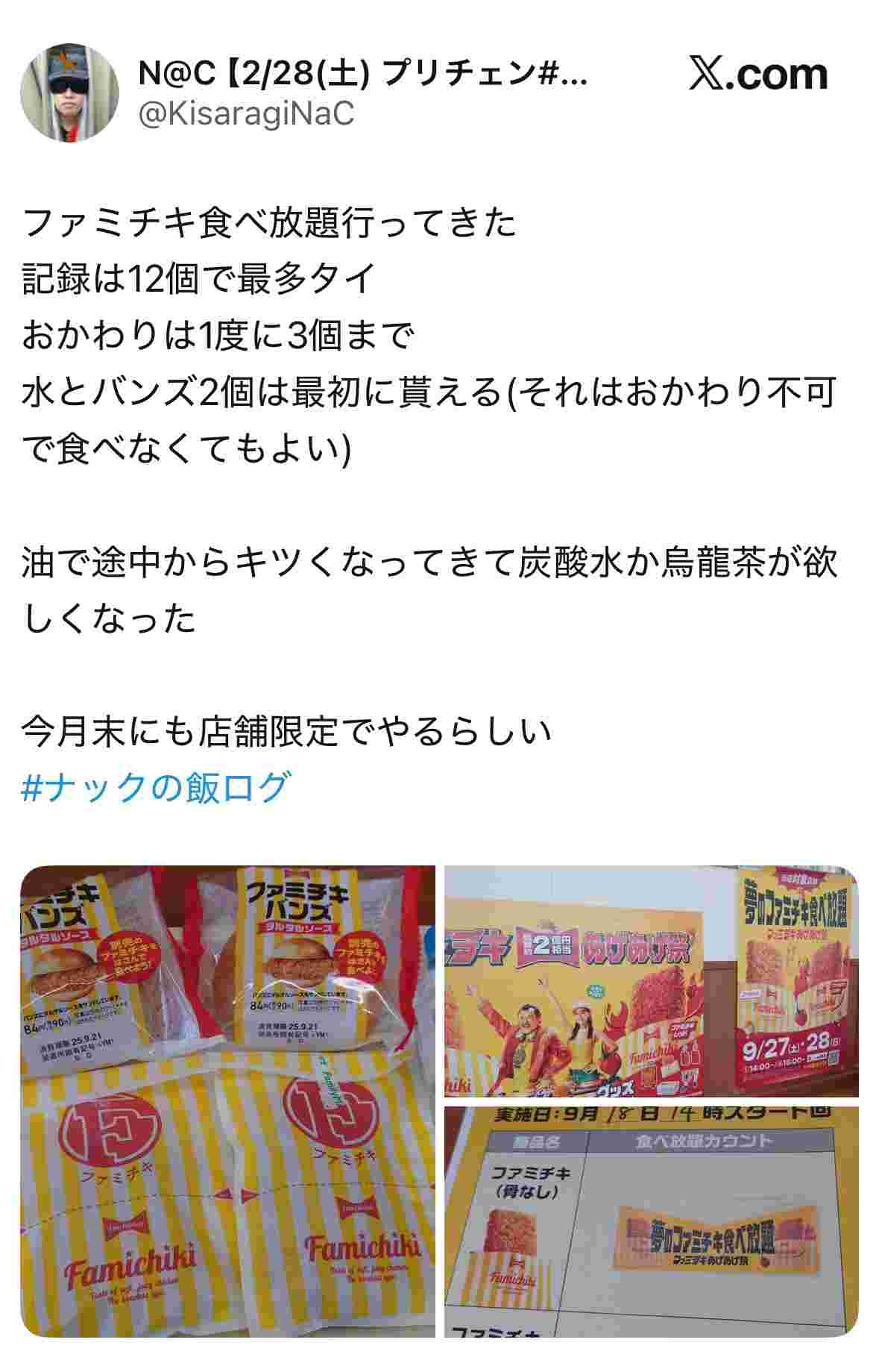 ファミチキ食べ放題(30分1000円)、全国10店舗で開催