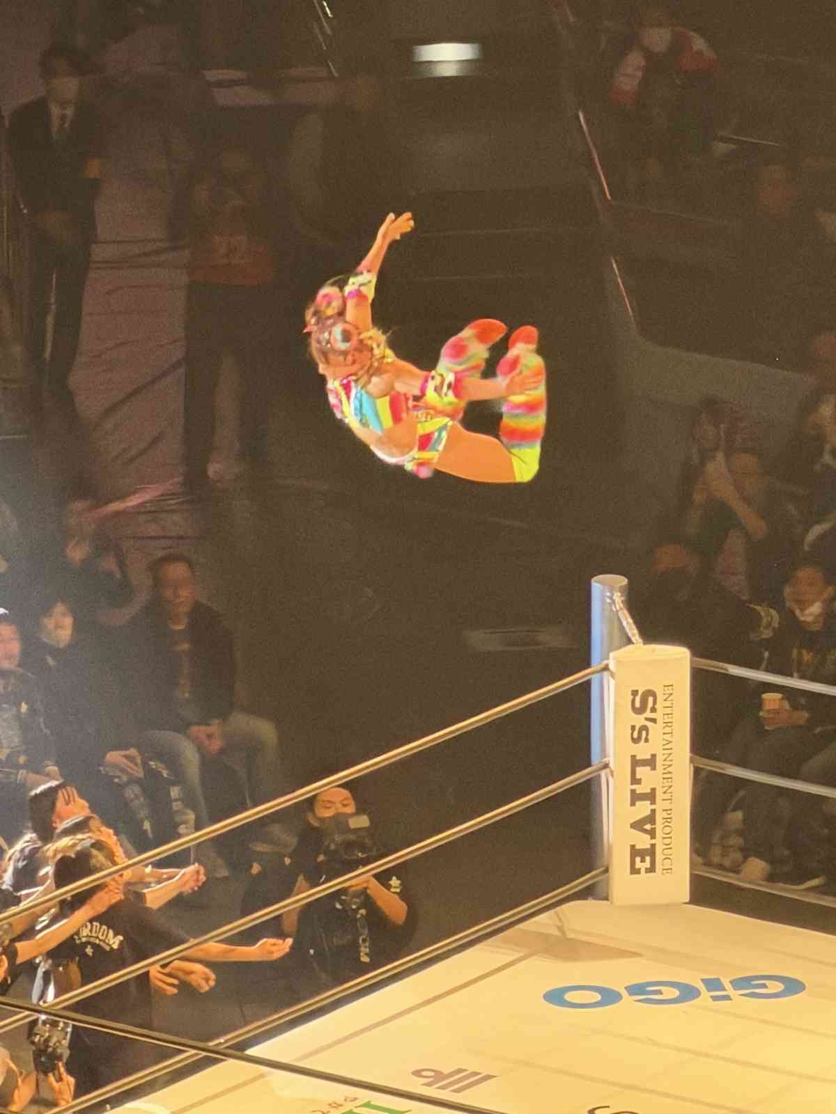 - 試合が決まったダイビングセントーンもモロに受けてるからかなり痛かったやろうな