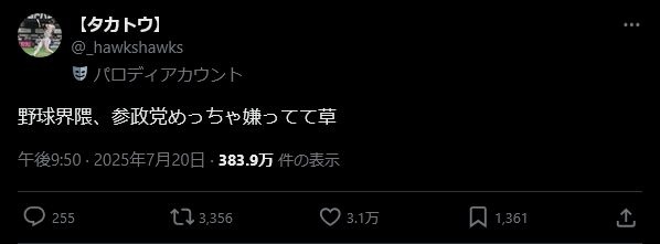 昨日の順位スレで巨人直江が参政党信者なのが判明したのが草