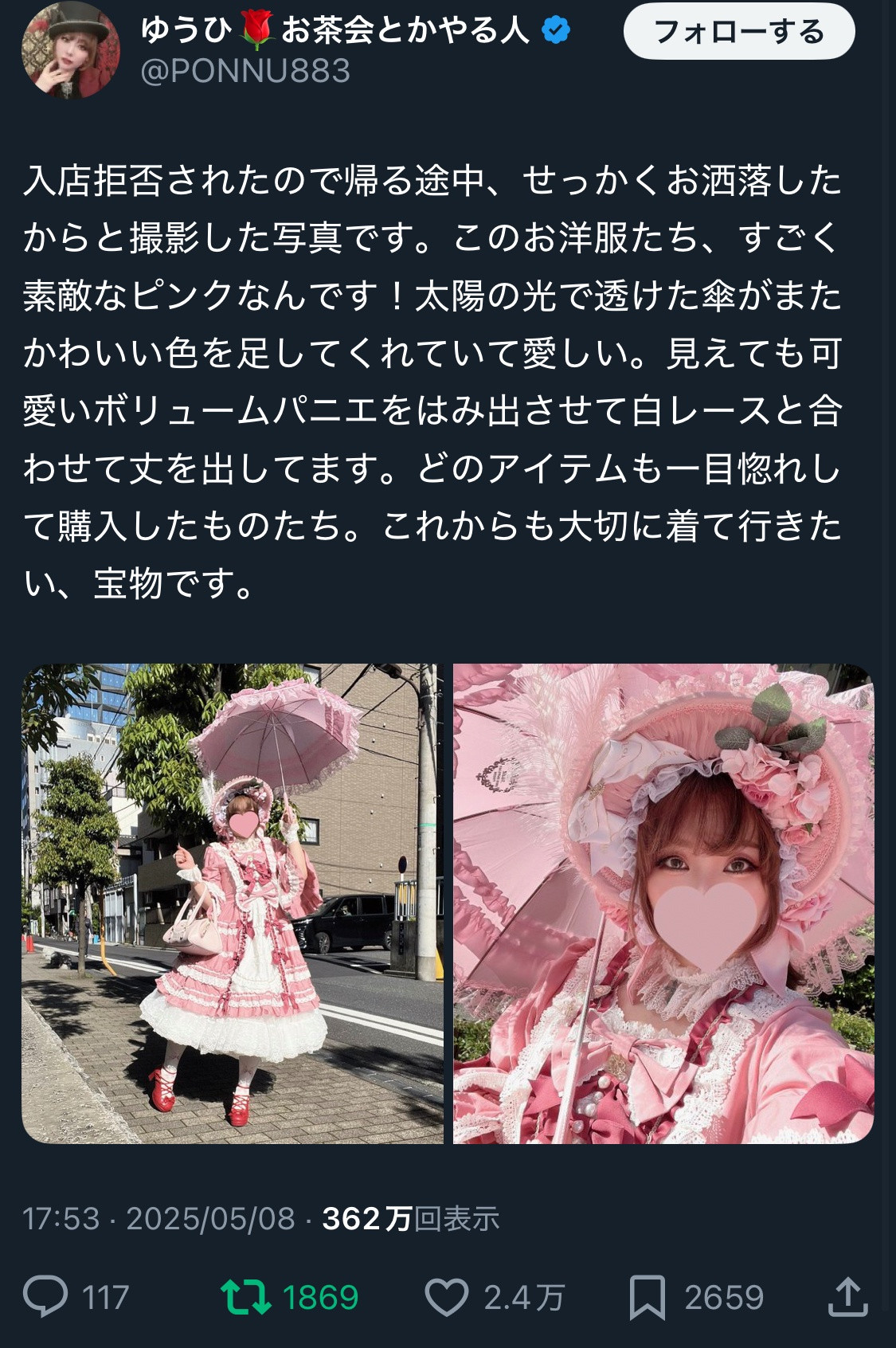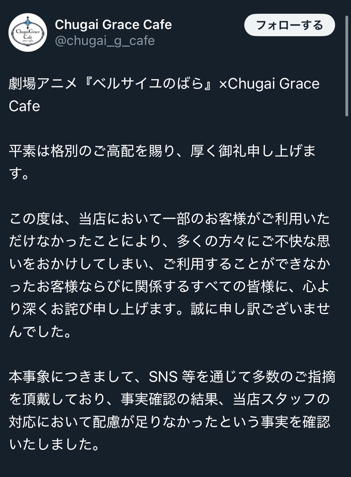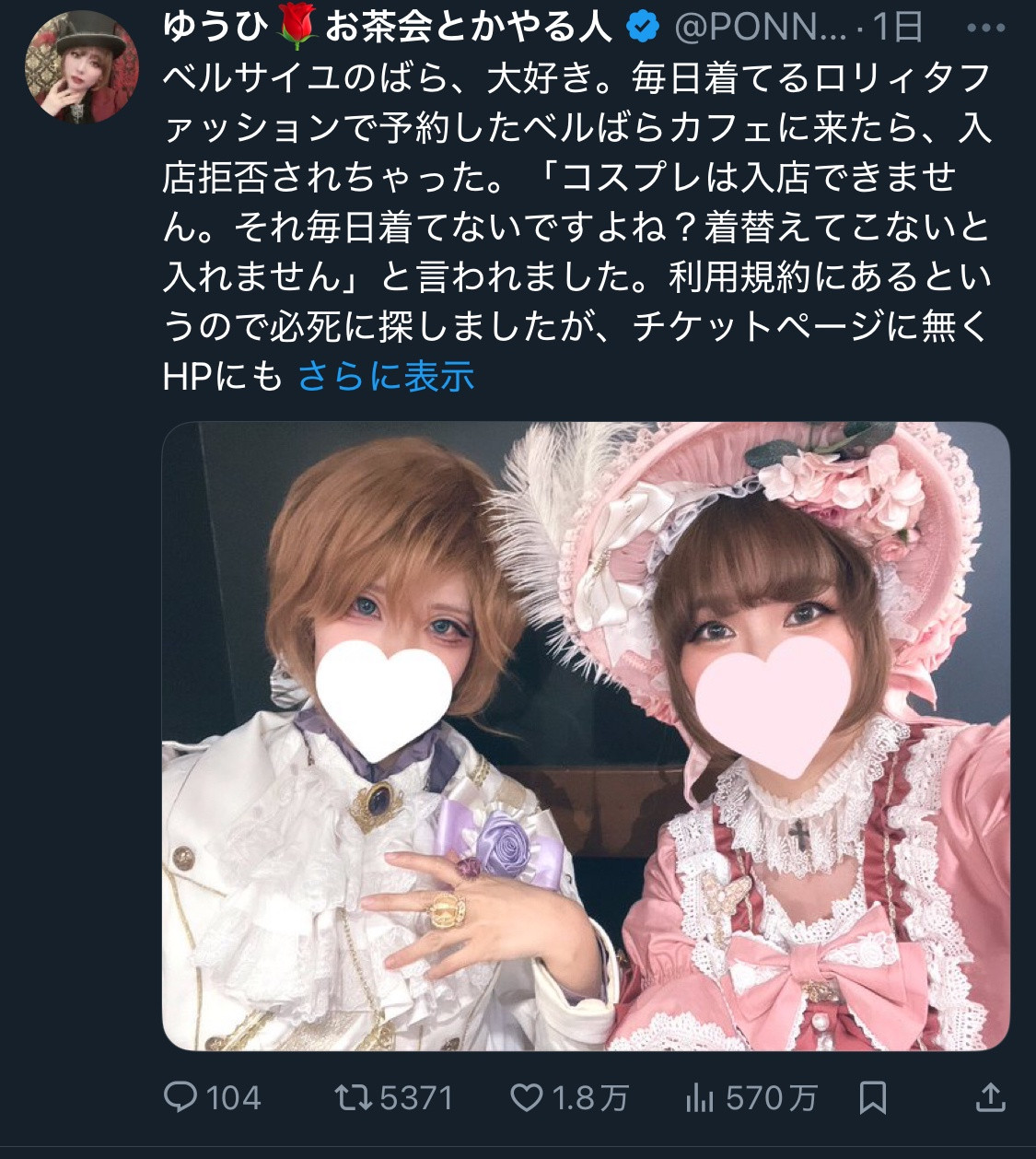 ベルばらカフェ「コスプレ客は出禁です」私服で行ったロリィタ姫が追い返される😭これ万博のせいだろ