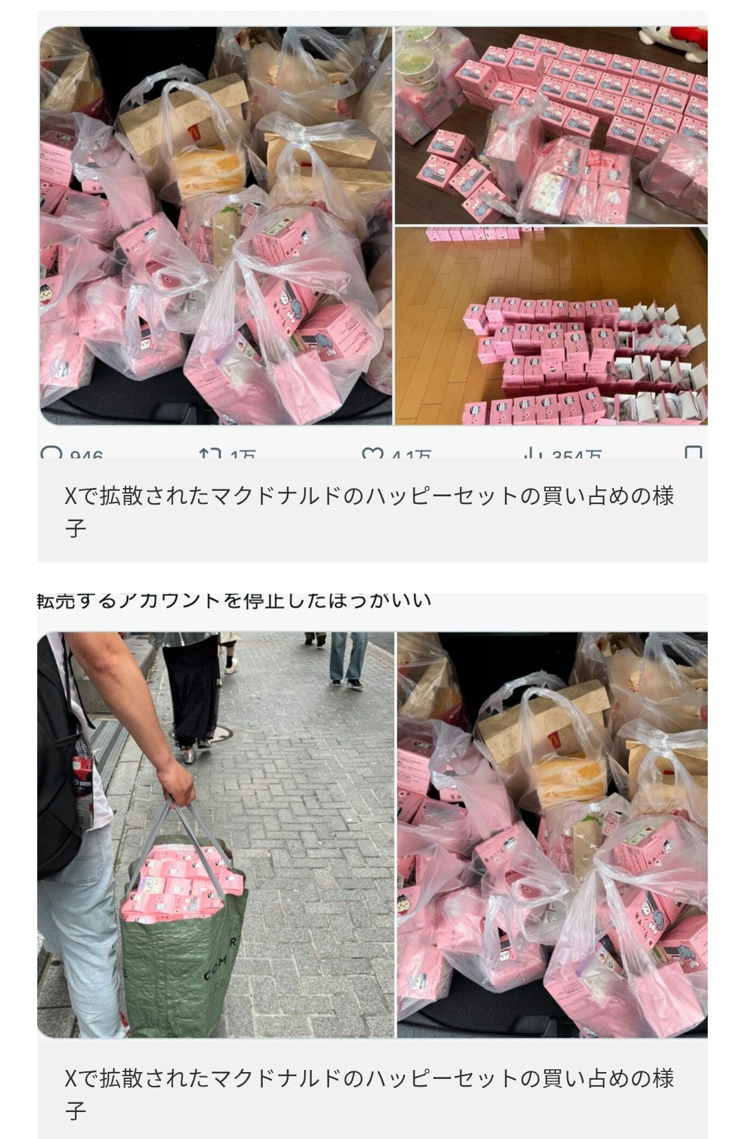 店内の混雑や転売以外にも、通常メニュー購入の利用客の待ち時間の長期化や、ドライブスルーで道路に渋滞が起きるなど、さまざまな余波があった今回の騒動。モラルのない行動も目立つ中、第2弾の販売がスタートする23日、全てのおもちゃが再登場する30日も混乱必至ではないかと懸念の声が寄せられています。- 2 : 2025/05/19(月) 18:56:28.55 ID:7+aoymD00