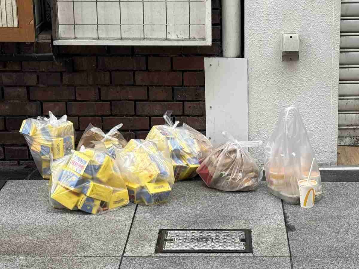 いらないハンバーガー無料回収しますのプラカード下げて乞食すんべ