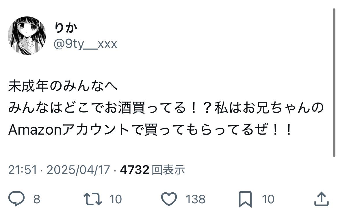 おじさん「未成年のみんな!お酒どこで買ってる?私はAmazon!」