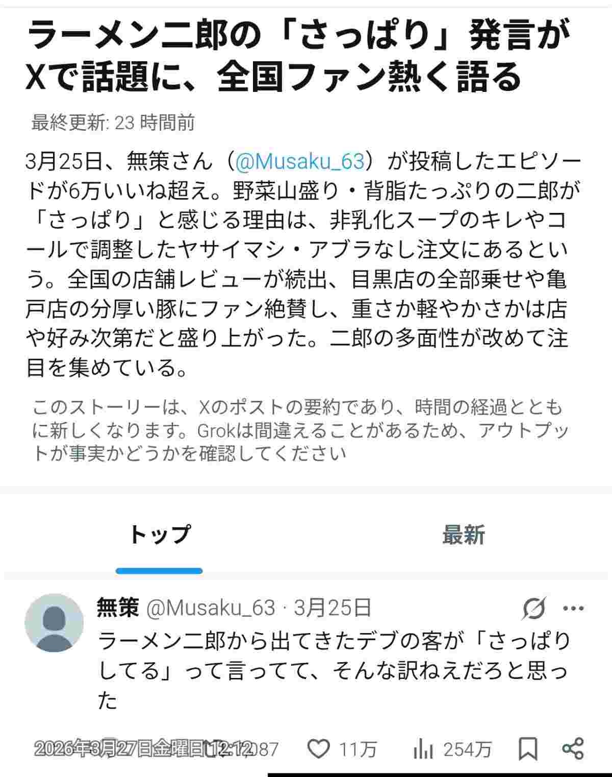 そして家系みたいなこってりさはなくてギトギトしてる - 9 : 2026/03/27(金) 12:26:47.34 ID:5i5Sh61TH