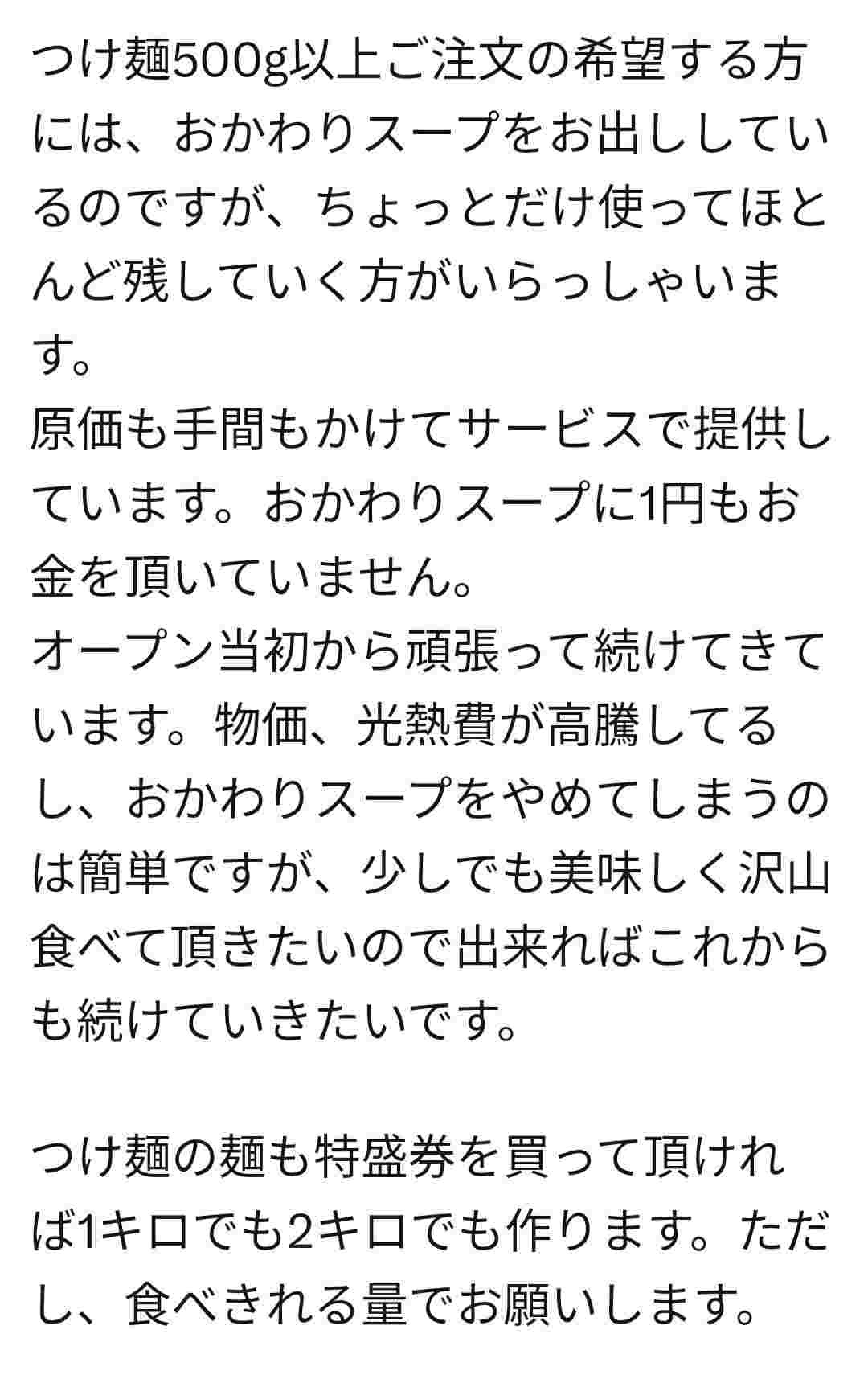 - 普通に金取るかおかわりスープの量調整するか考えりゃいいじゃん