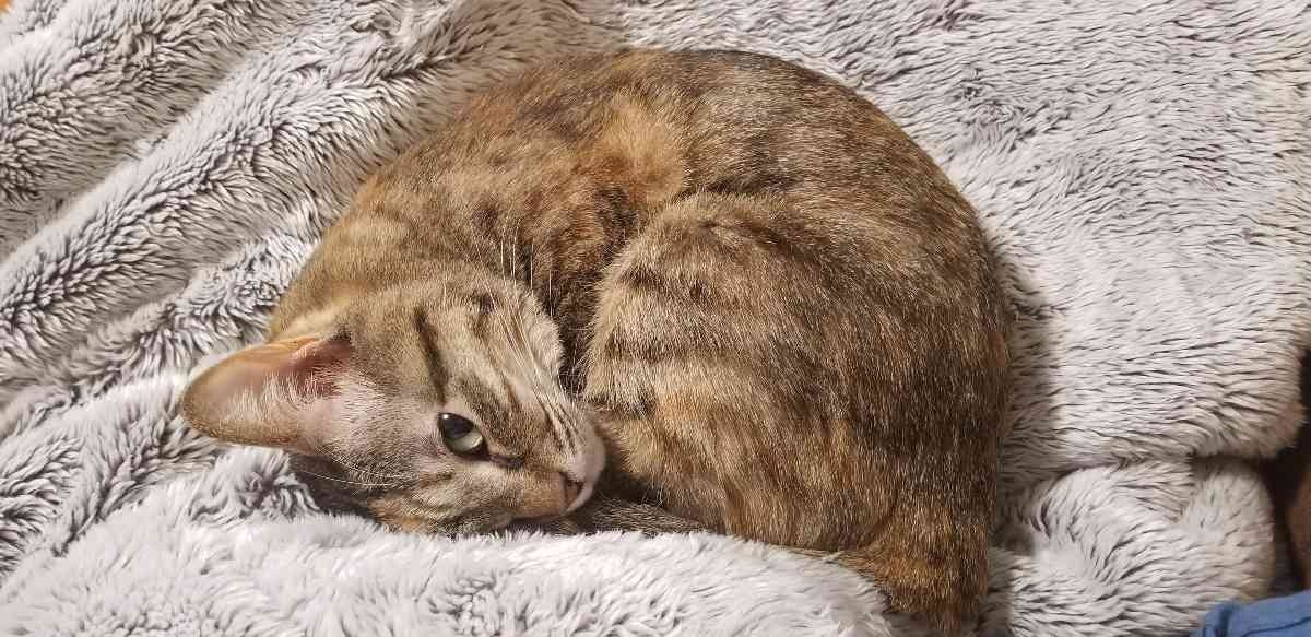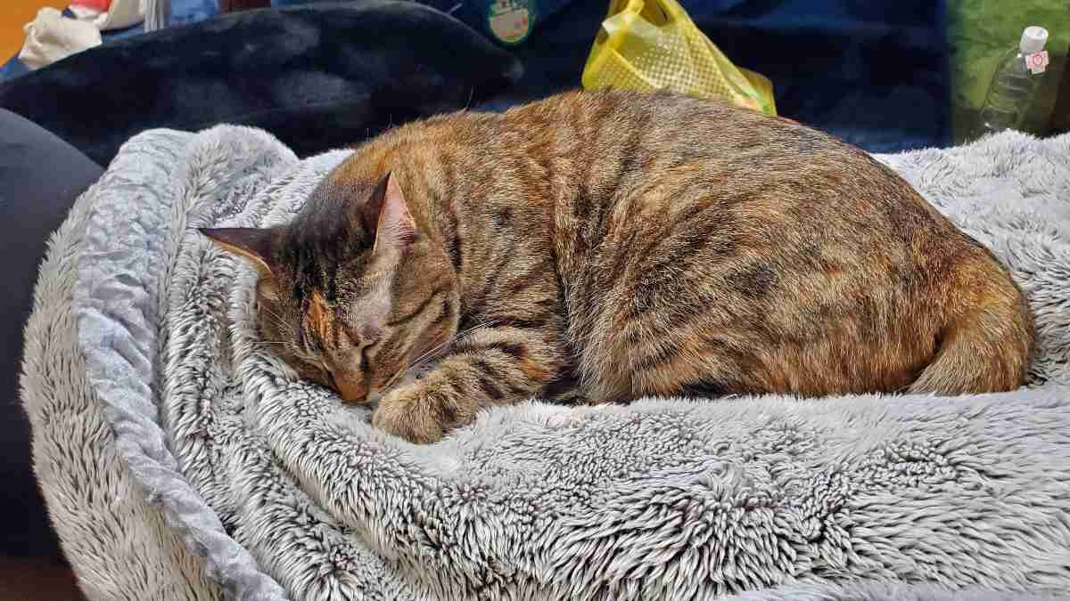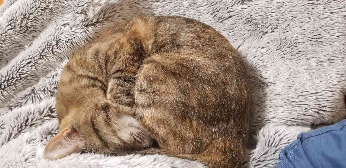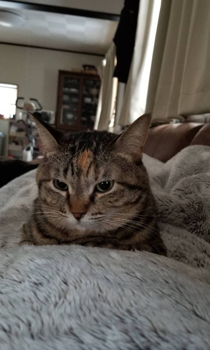 - キジトラかと思ったけど頭のあたりにワンポイント色違うしこれも三毛の一種なんやろか