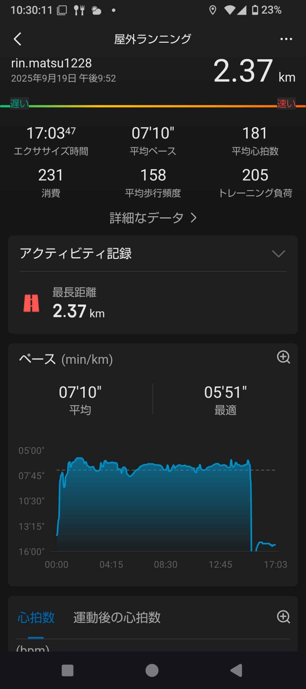 貼ってから気づいたけど今日1200じゃなくて1000mしか走ってないやん
