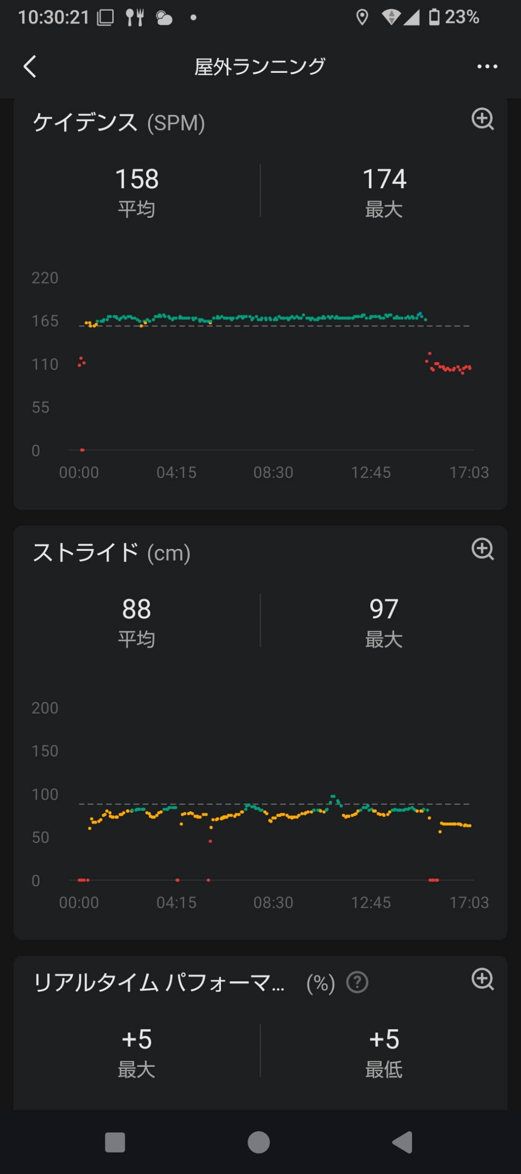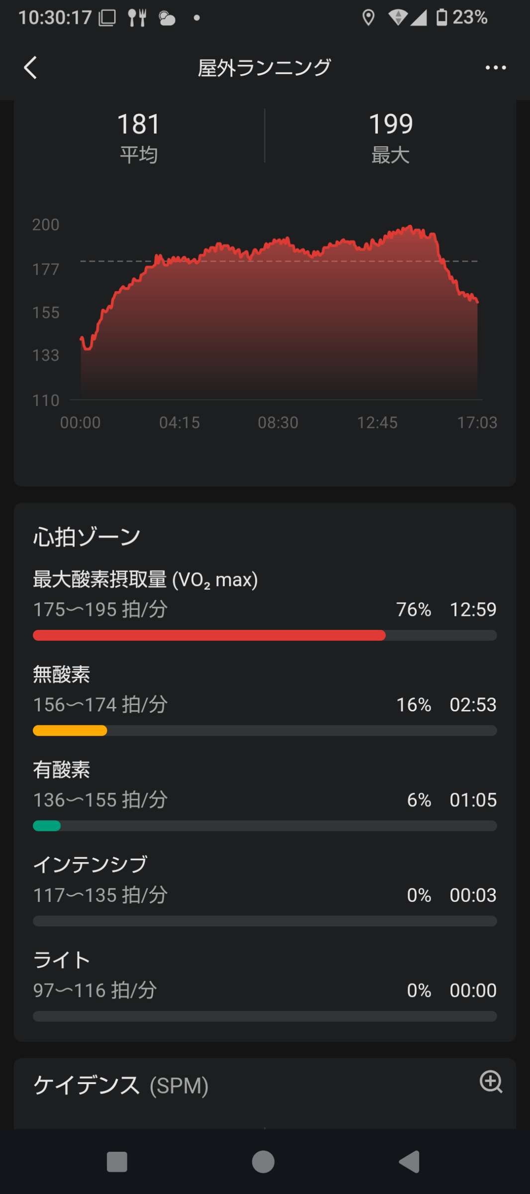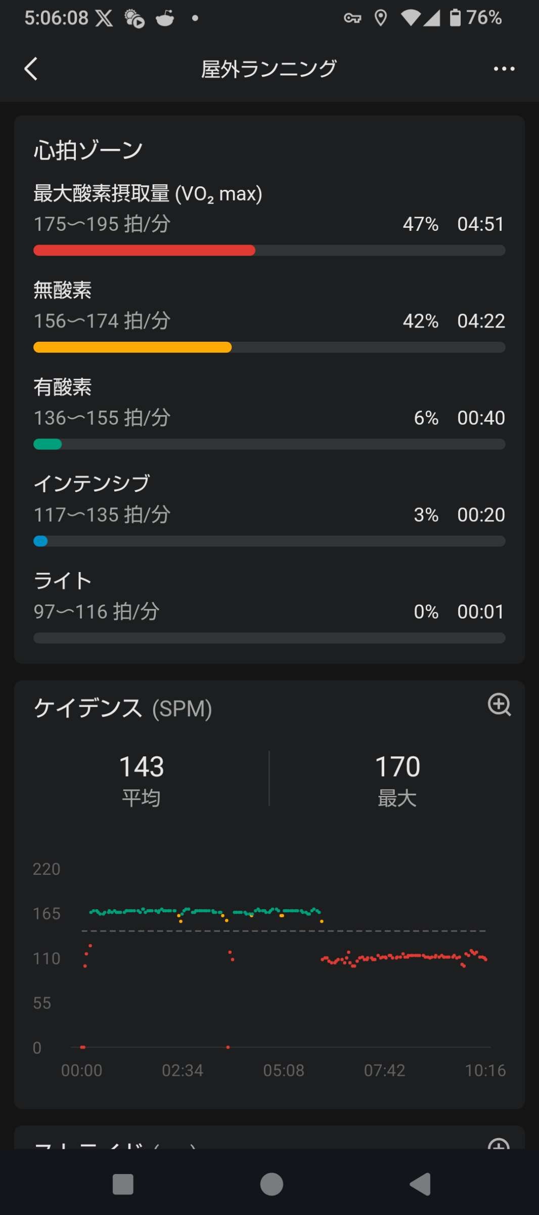 イッチのアプリによると155までが有酸素ゾーンやからたまに時計見てそれを越えてたらスピード落とすなり歩くなりするのがいいよ