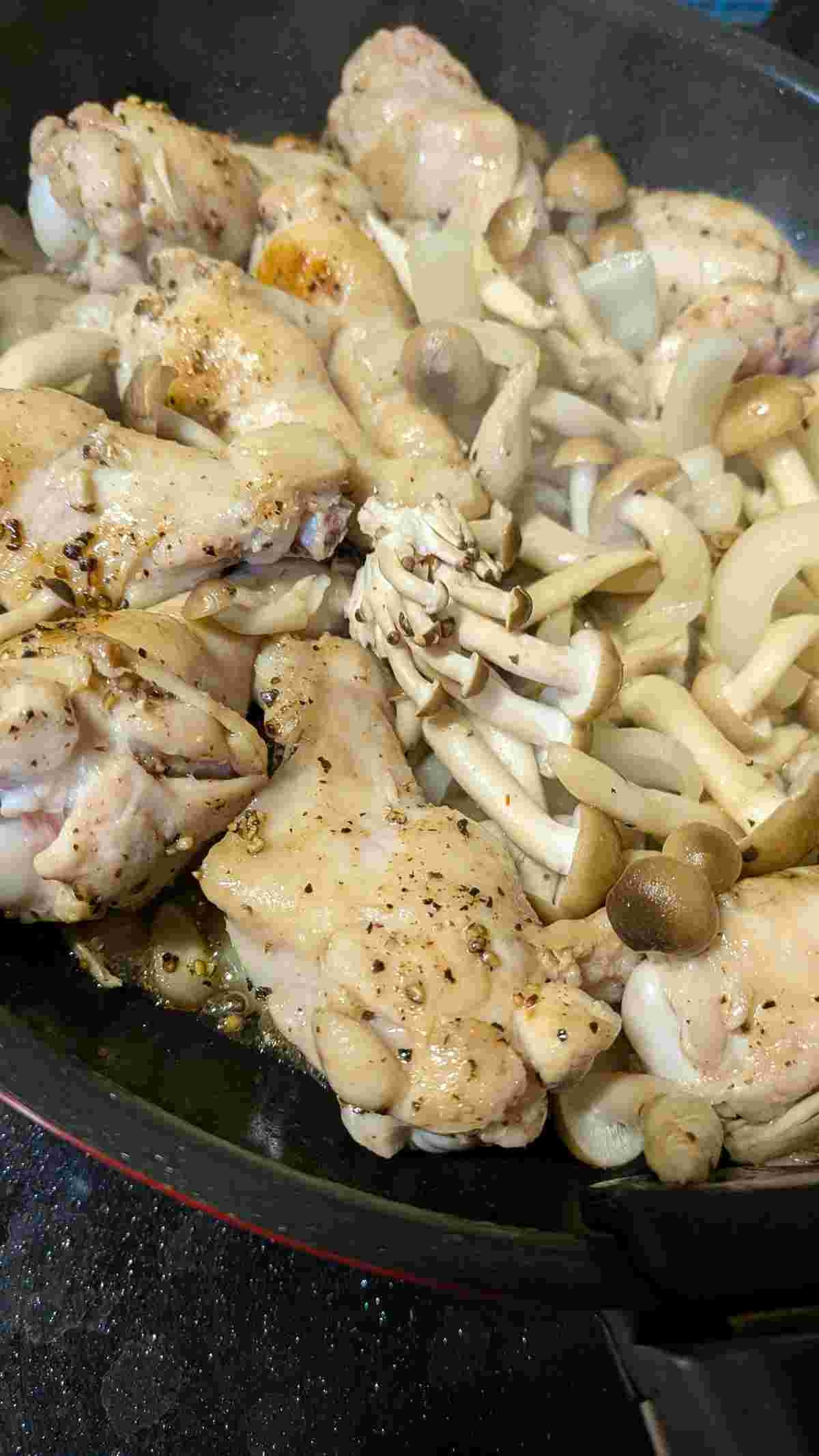 - (´・ω・`)しめじと玉ねぎも入れるよ