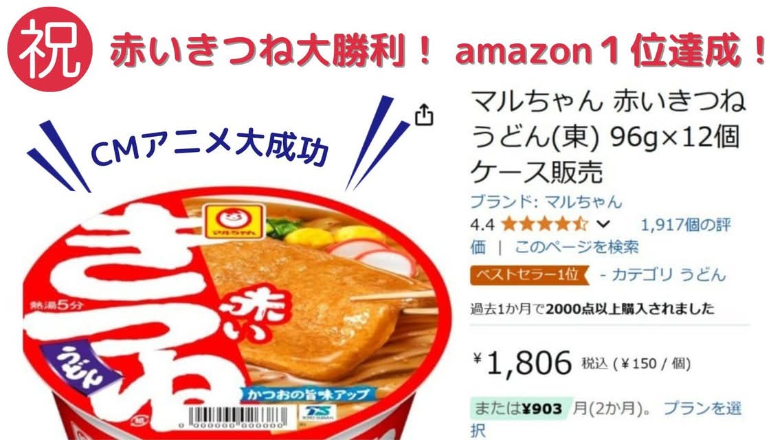㊗赤いきつね大勝利!amazon1位達成!CMアニメ大成功