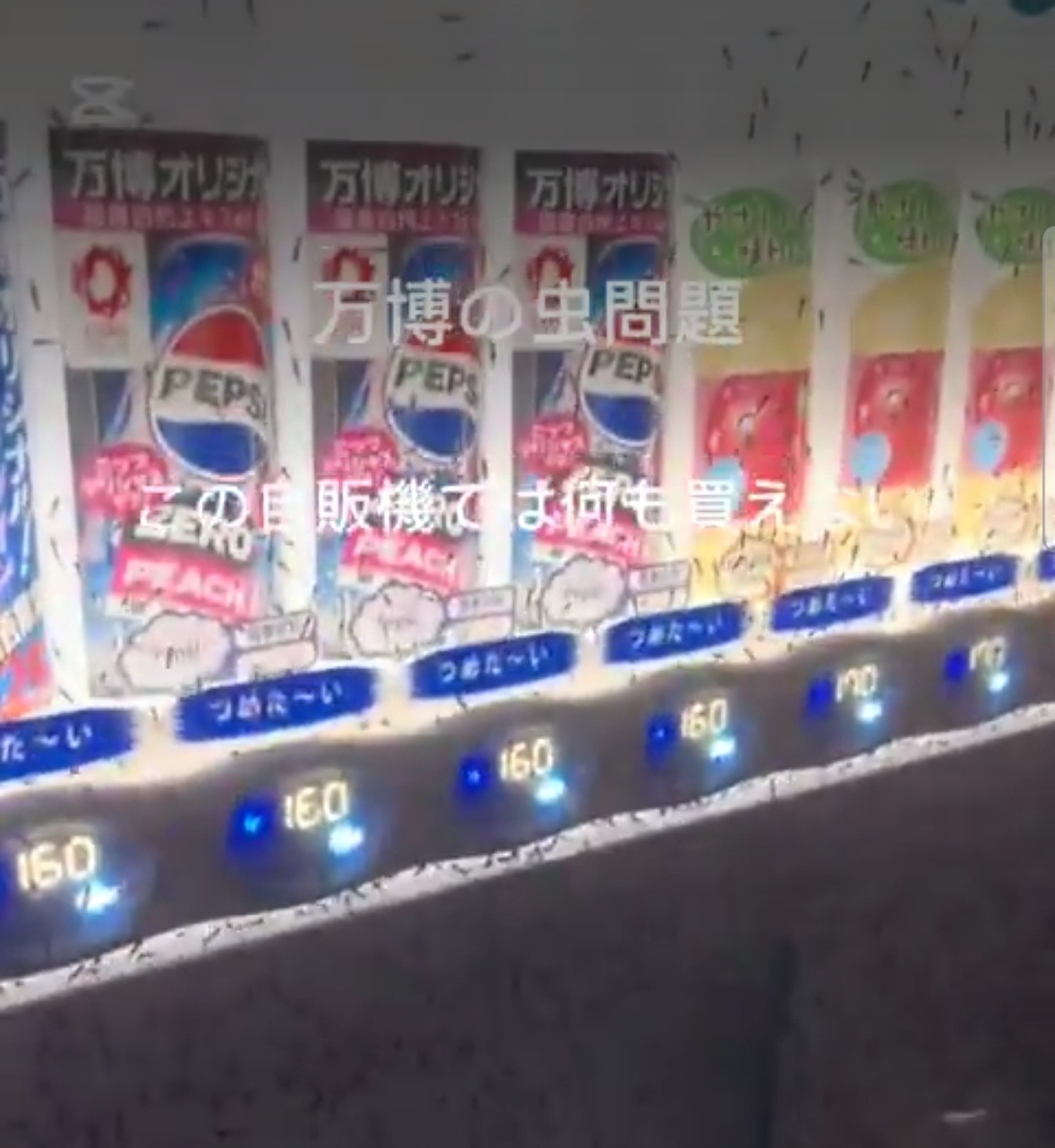 万博の虫さん、自販機にびっしり張り付き、飲み物もろくに買えない事態に😭👉