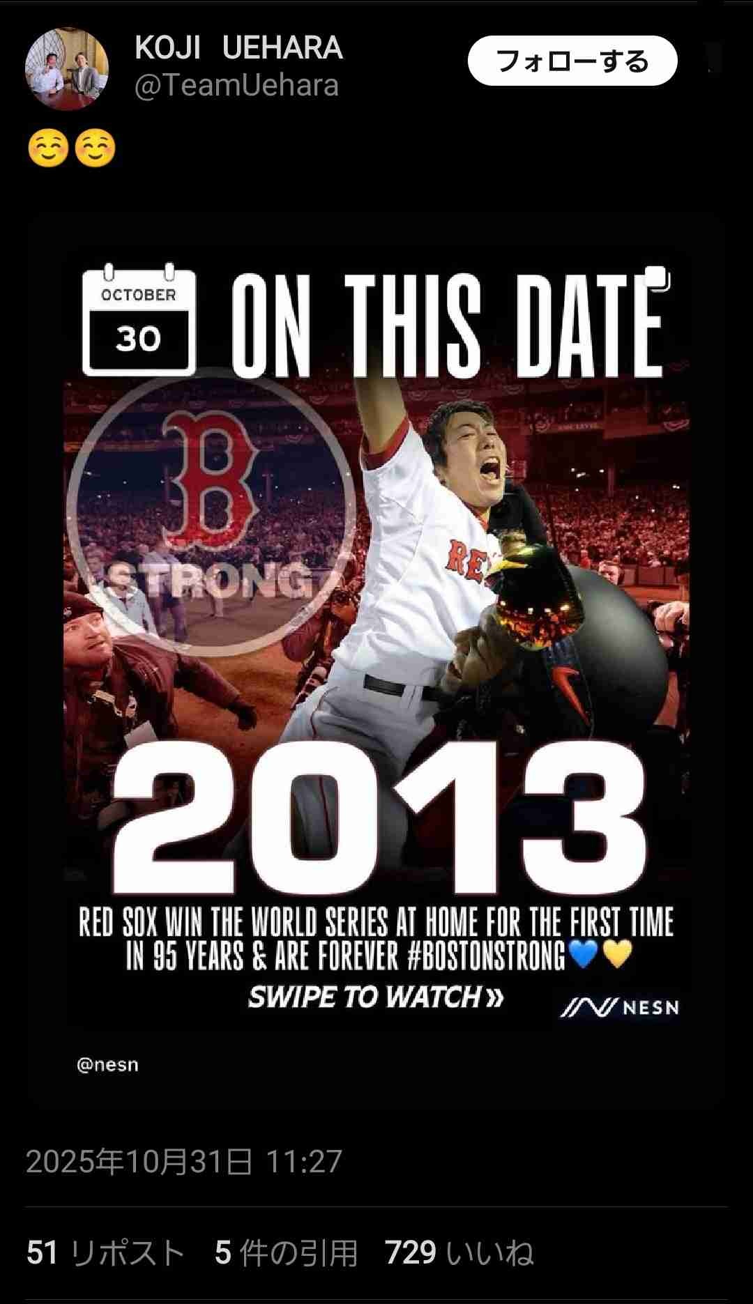 - まあ次は「僕らは(大谷と違って)95年ぶりに地元で胴上げしたんですよ☺」っていうんちゃうんかな