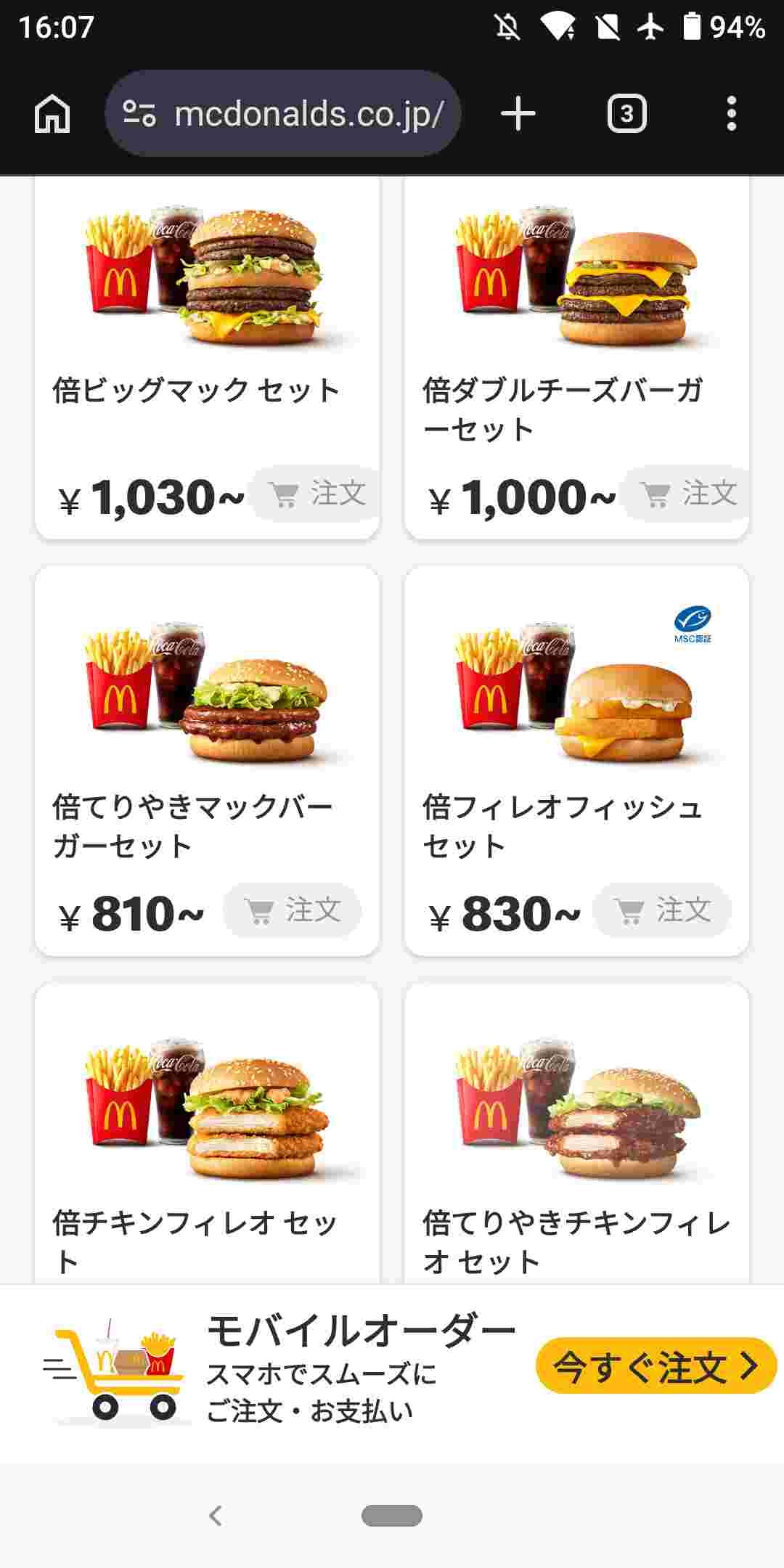 - ランク高い店舗だと倍ビッグマックセット1110円だったよ