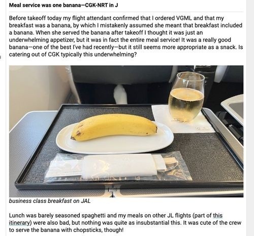 - JALビジネスクラスの機内で出された軽食が“バナナ1本”で唖然……ヴィーガン客が「屈辱的だった」と語る