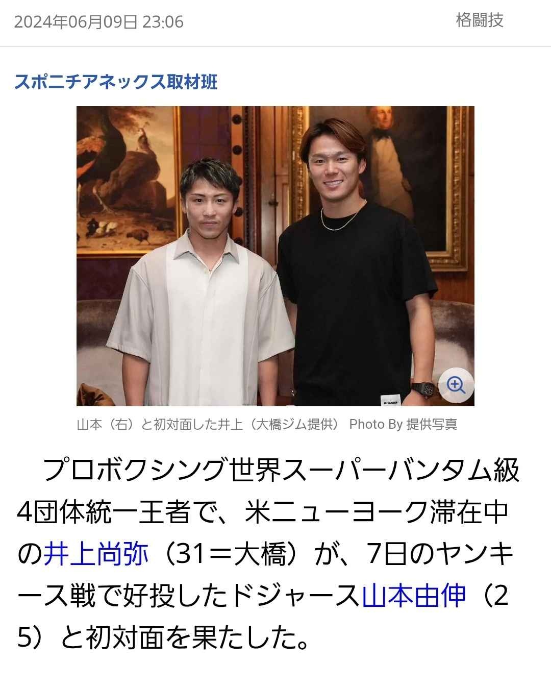 井上尚弥『大谷翔平ってのと喋ったけど全く興味わかなかったな。そんな俺が好き』