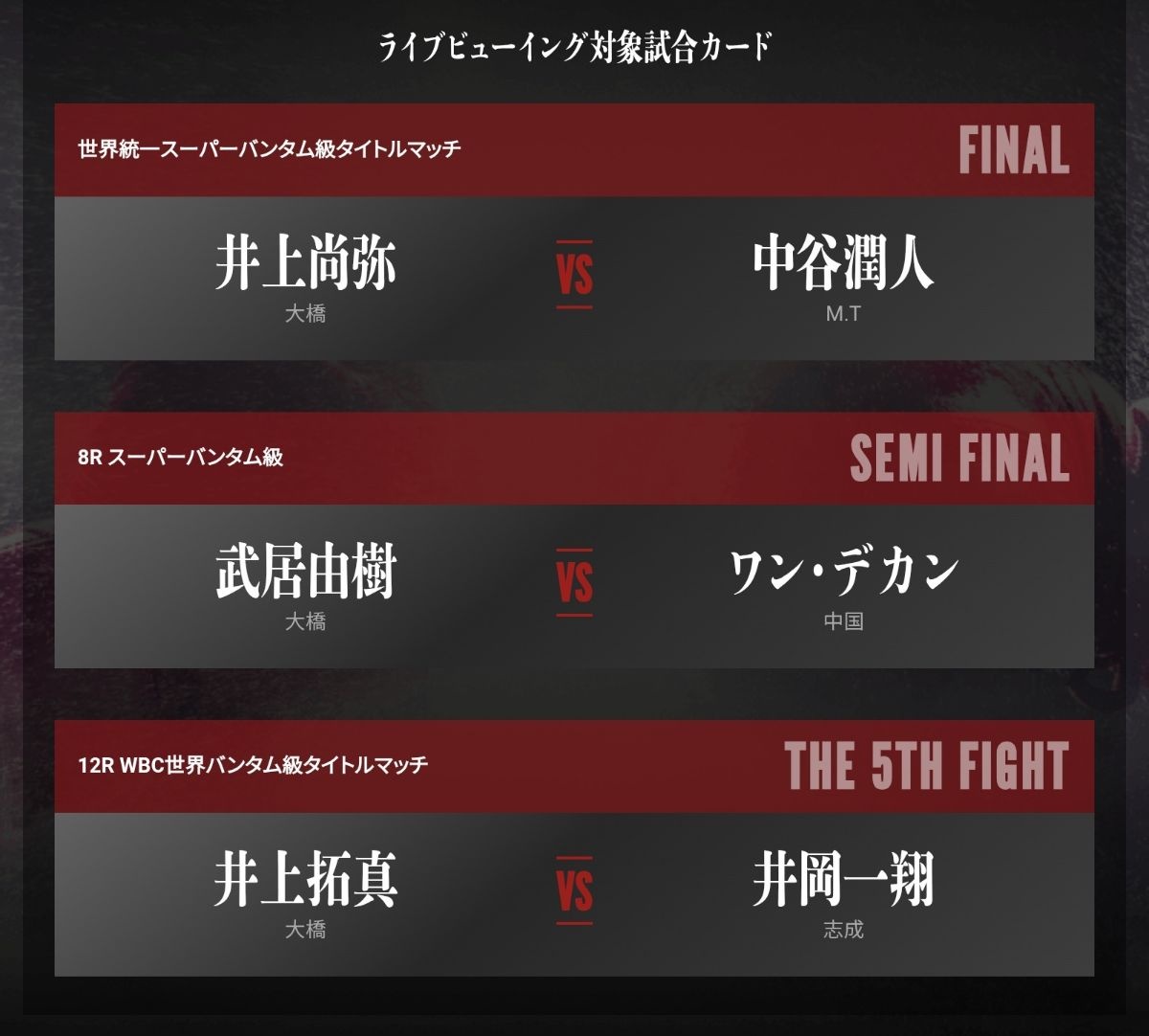 - オッズだと井上1.33 中谷3.3倍だから中谷勝つのもまぁまぁありえるな