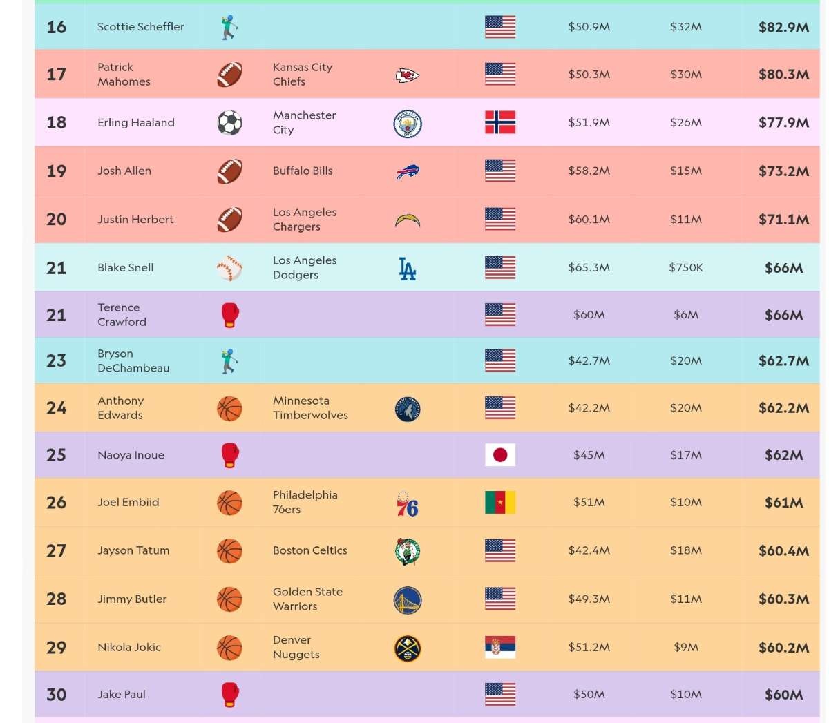 - アスリート年収ランキングで井上尚弥が世界25位(620万ドル)
