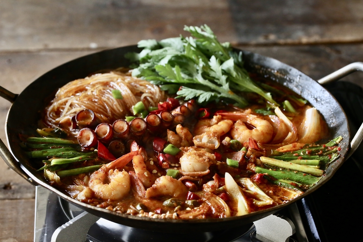 ナッコプセ(たことホルモンと海老の旨辛鍋)