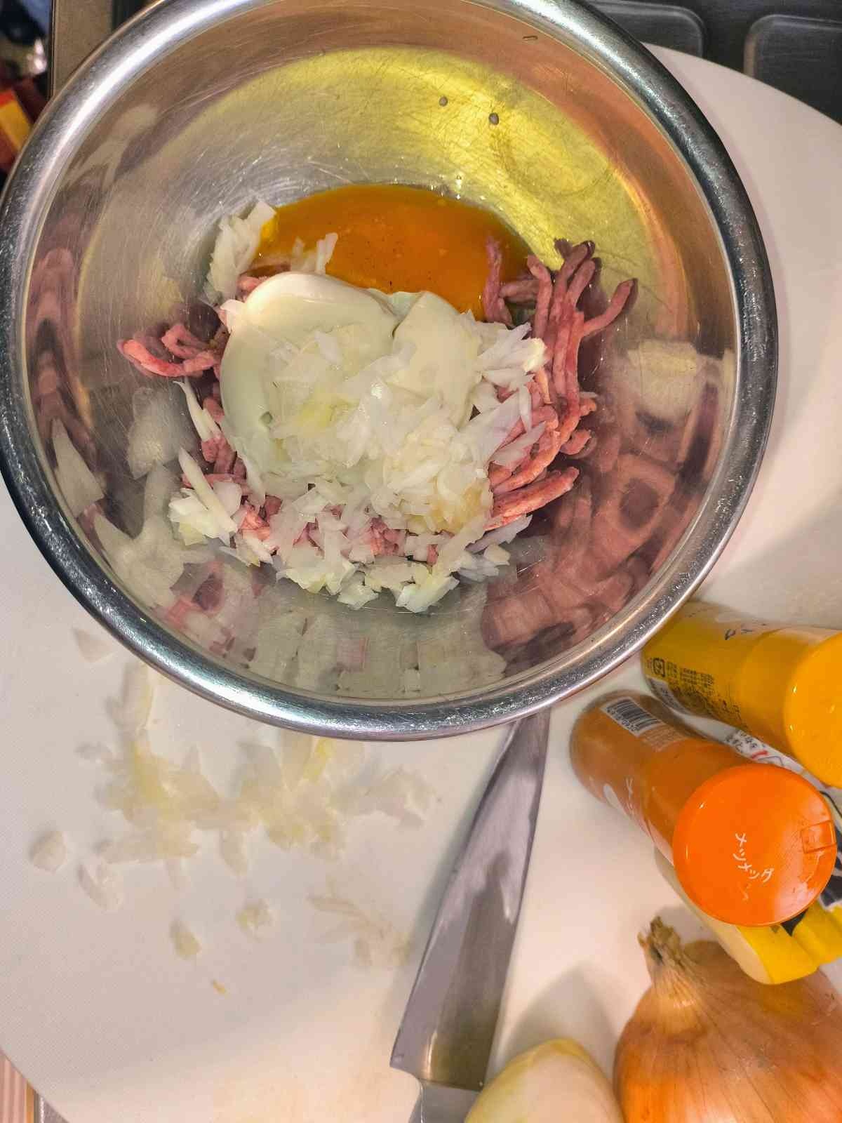 ハンバーグは一からこねる