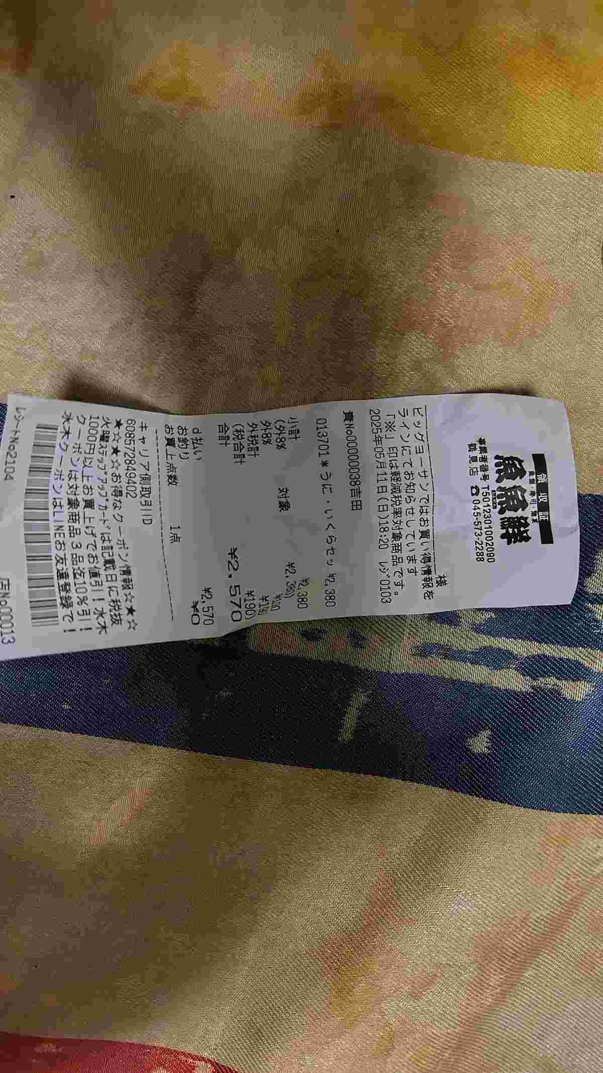 ガッツリレシートに魚魚鮮って書いてるから嘘なら営業妨害やな