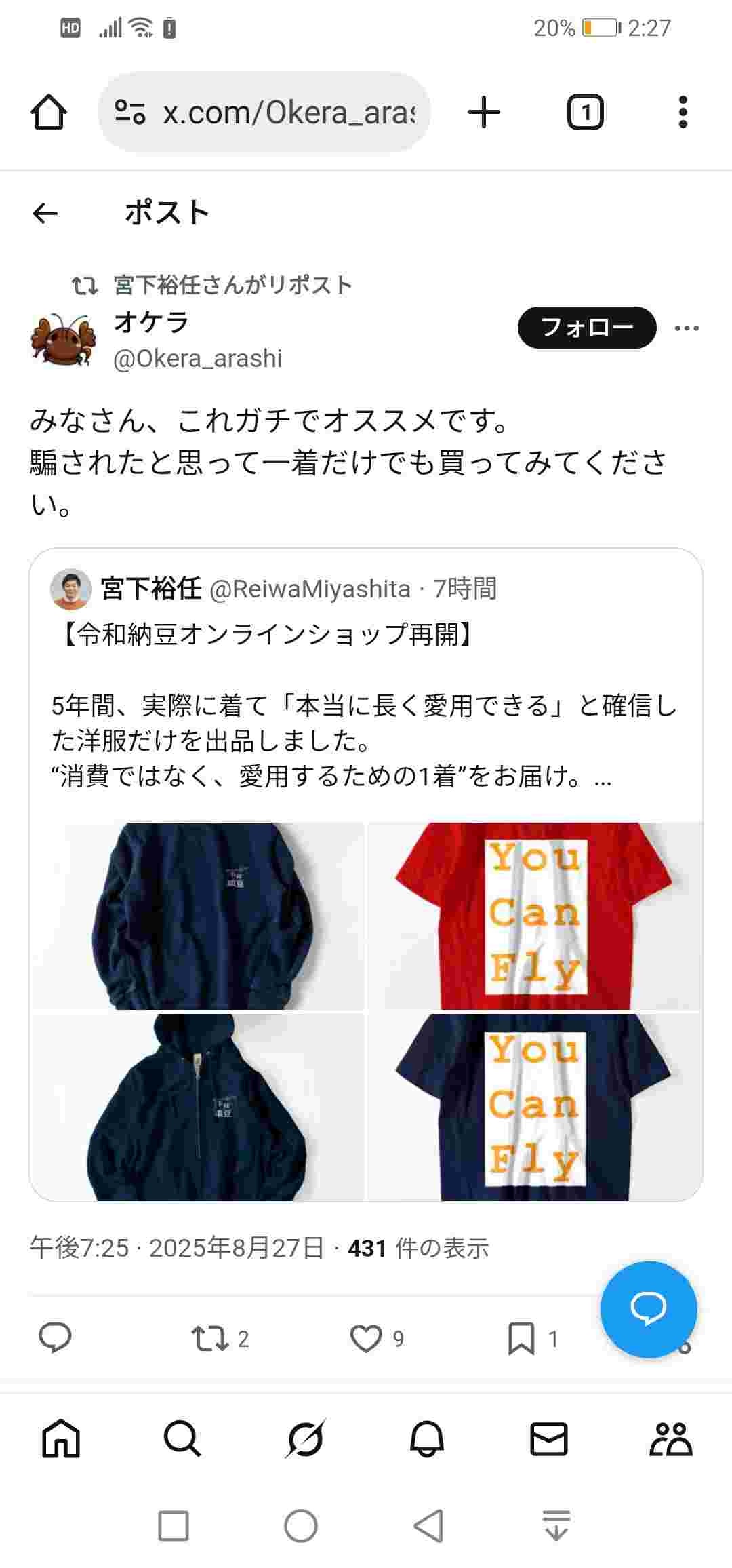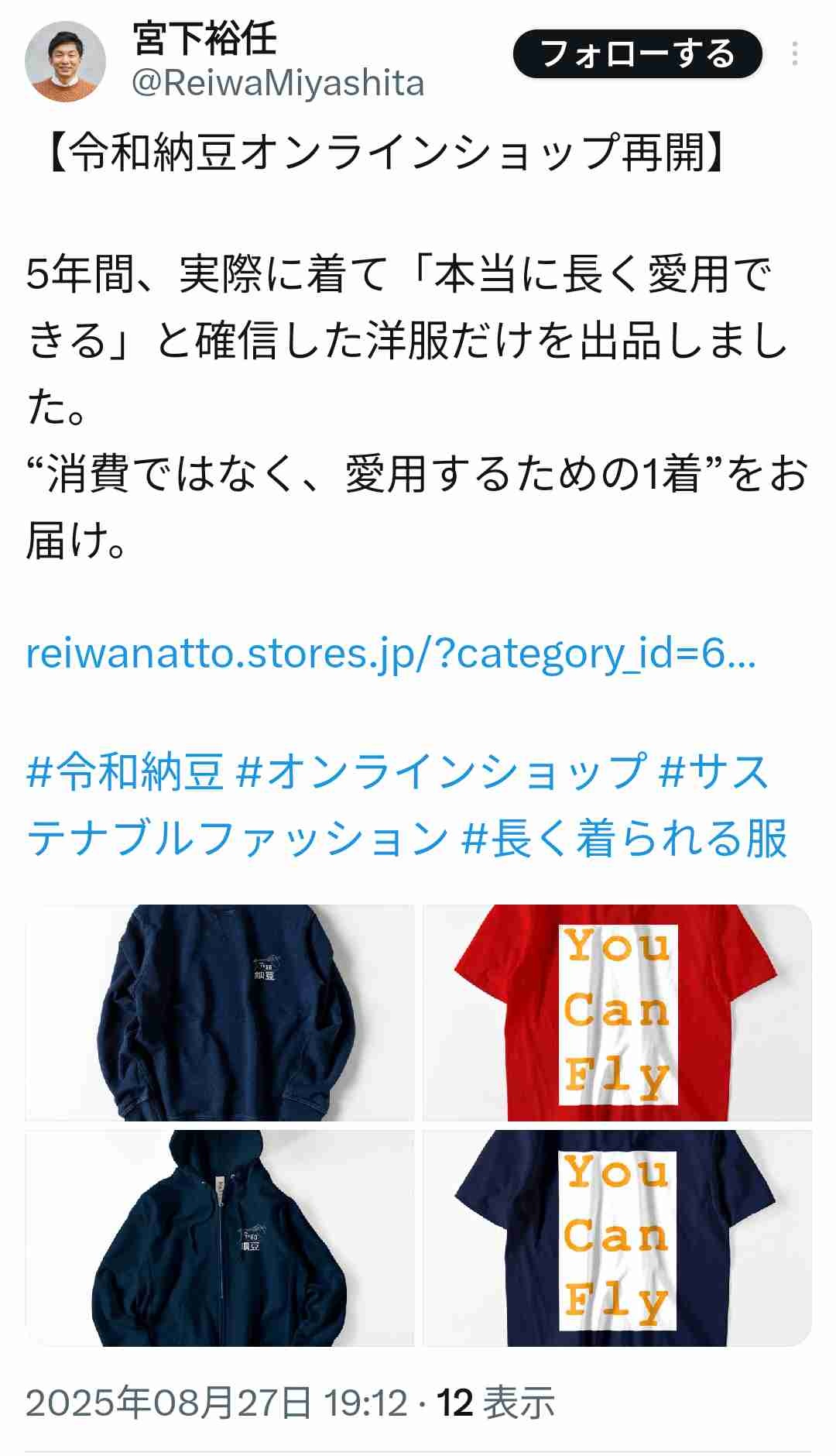 令和納豆の物販サイトが再開した模様。【納豆猿パーカー、you can fly】