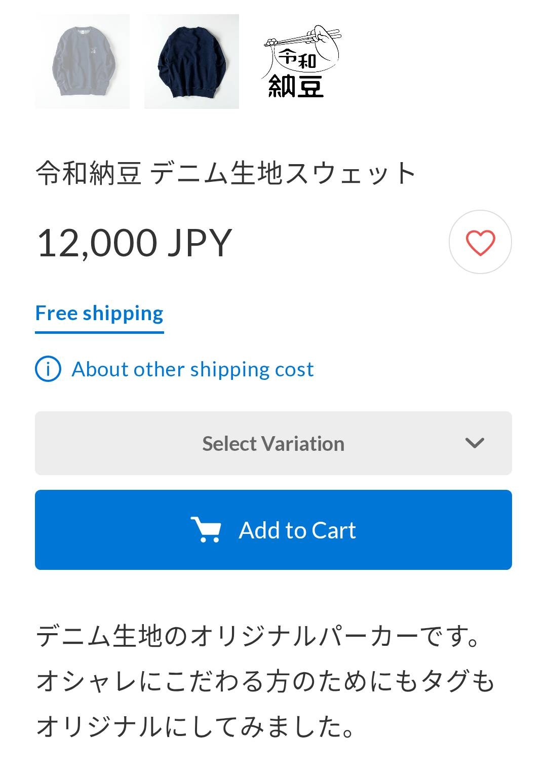 令和納豆 デニム生地スウェット