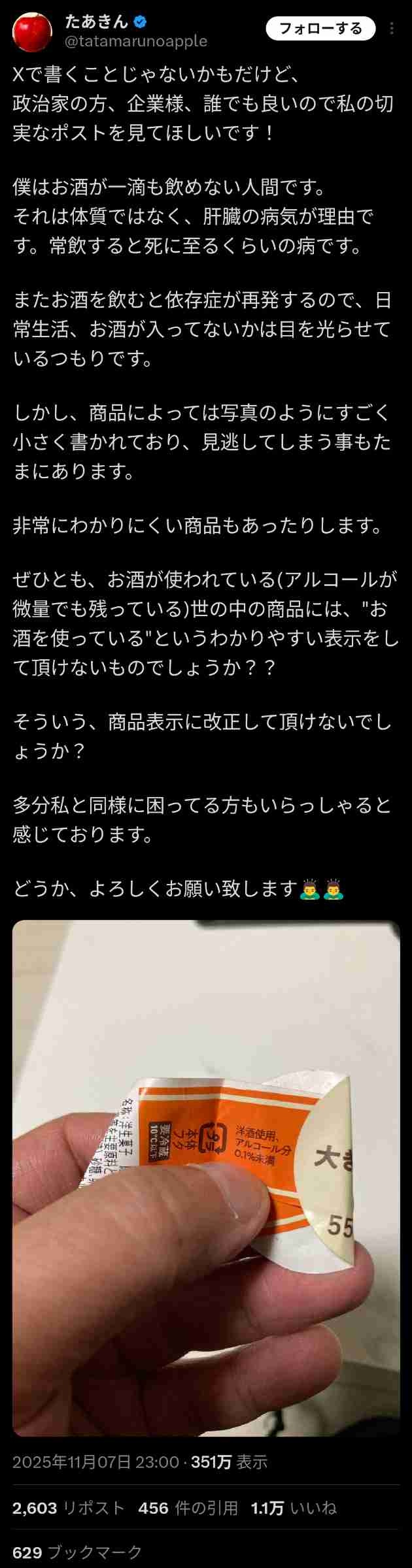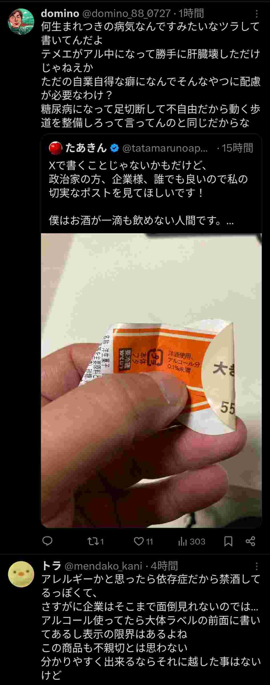 - アルコール表記をデカく書いてほしいってだけでこんだけ非難する奴らのほうがおかしいわ