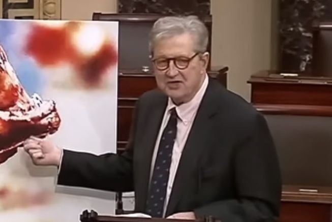 この問題について、ケネディ議員は9月3日、上院本会議場に1979年の映画『エイリアン』の画像を持ち込み、「議長、これは外国からアメリカに輸出される冷凍の生エビを食べたらこうなってしまうかもしれない、ということを意味しています」と発言した。