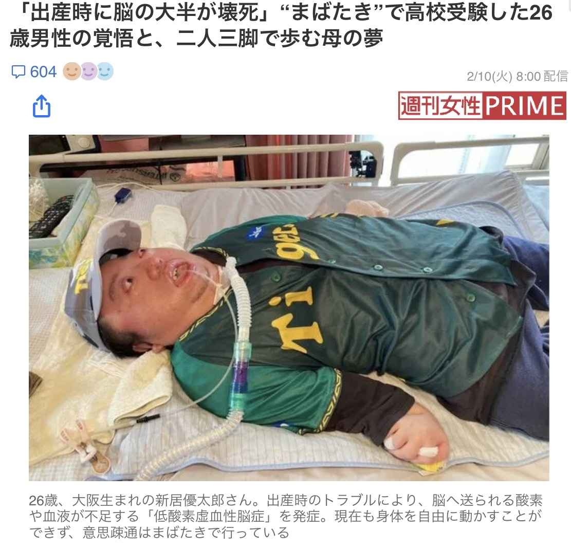 「出産時に脳の大半が壊死」“まばたき”で高校受験した26歳男性の覚悟と、二人三脚で歩む母の夢(週刊女性PRIME) - Yahoo!ニュース子どもの自立は、親にとって大きなテーマだ。学校を卒業し、就職を機に実家を離れるなど、ひとり立ちの過程で、社会の一員としての自覚や責任を身につけていく。だが、障害のある子どもの場合、親や本人が自立をnews.yahoo.co.jp - 2 : 2026/02/10(火) 17:19:54.76 ID:vr2BrUE20