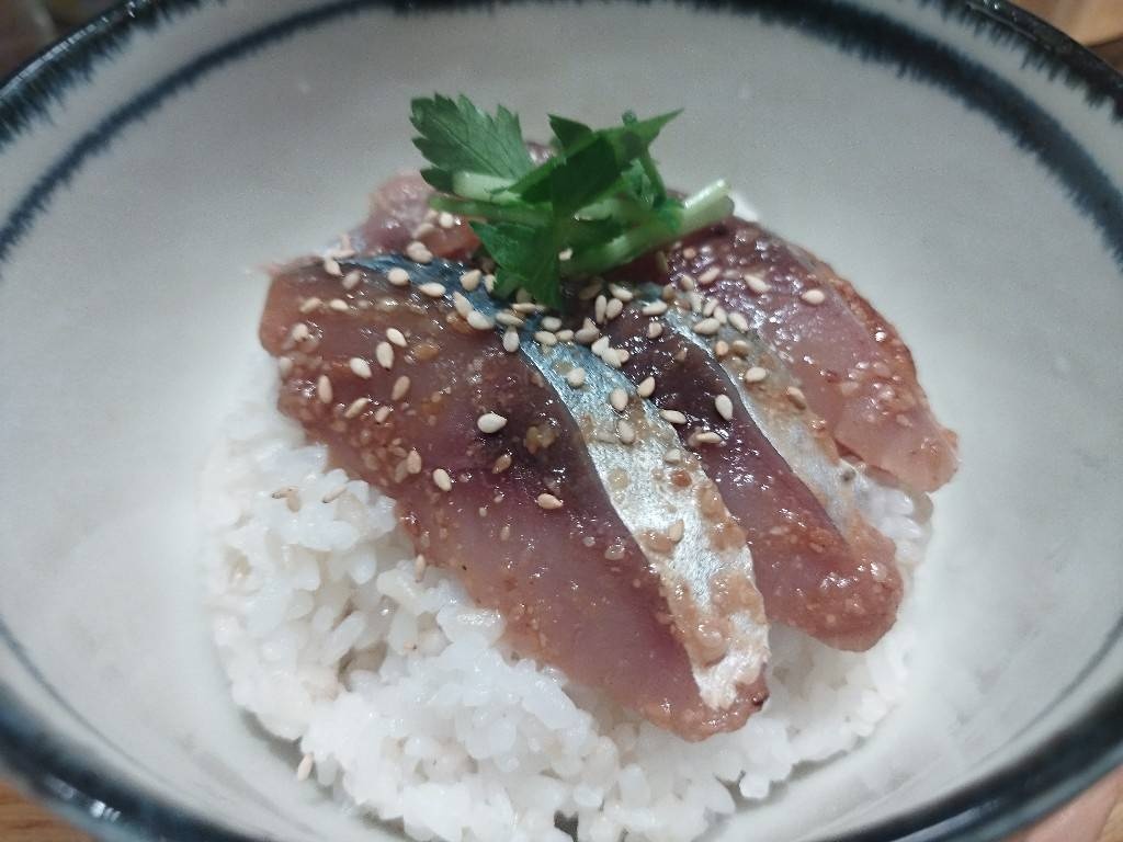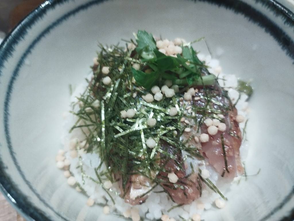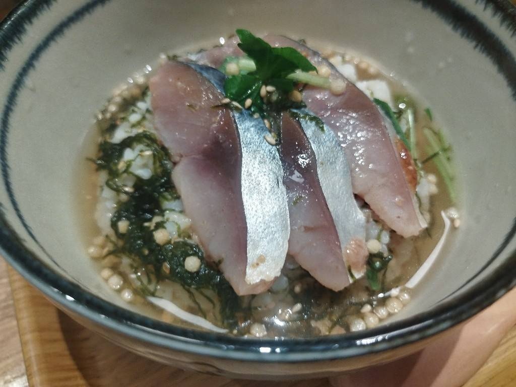 - んで、ごま鯖と鯵のたたき茶漬けのお出座し♬