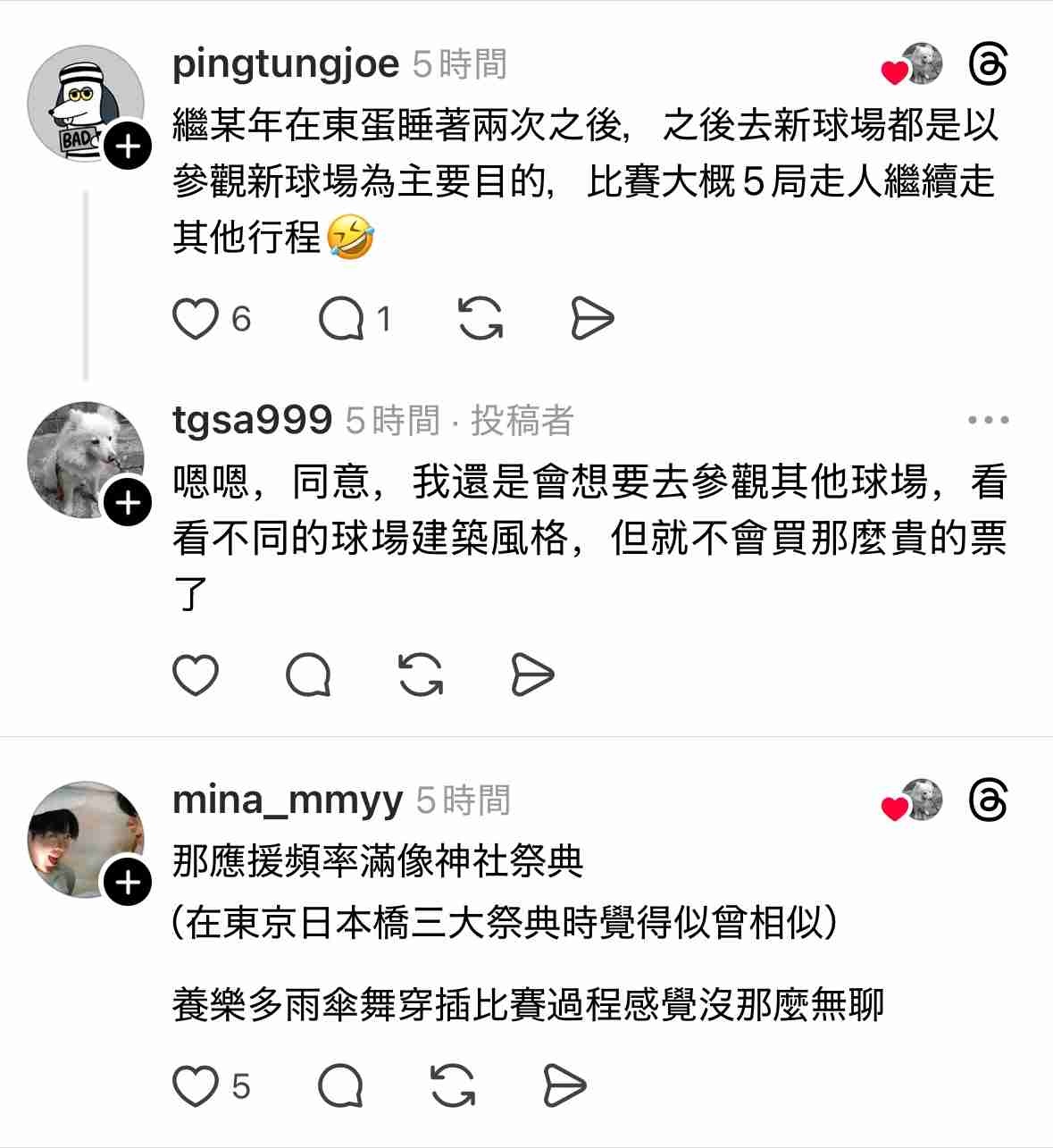 「ある年に東京ドームで二度も寝てしまった後、新しい球場に行くのは主に見学が目的で、試合はだいたい5回で退場して他の予定を続ける🤣」