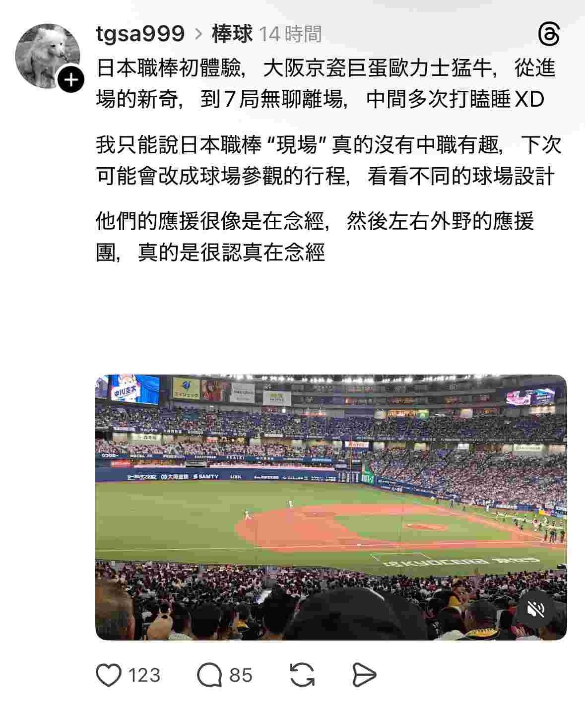 「CPBL、NPB、KBO、MLB、NBA、CLを生観戦したことがある。京セラは唯一寝落ちしたスタジアムだ…