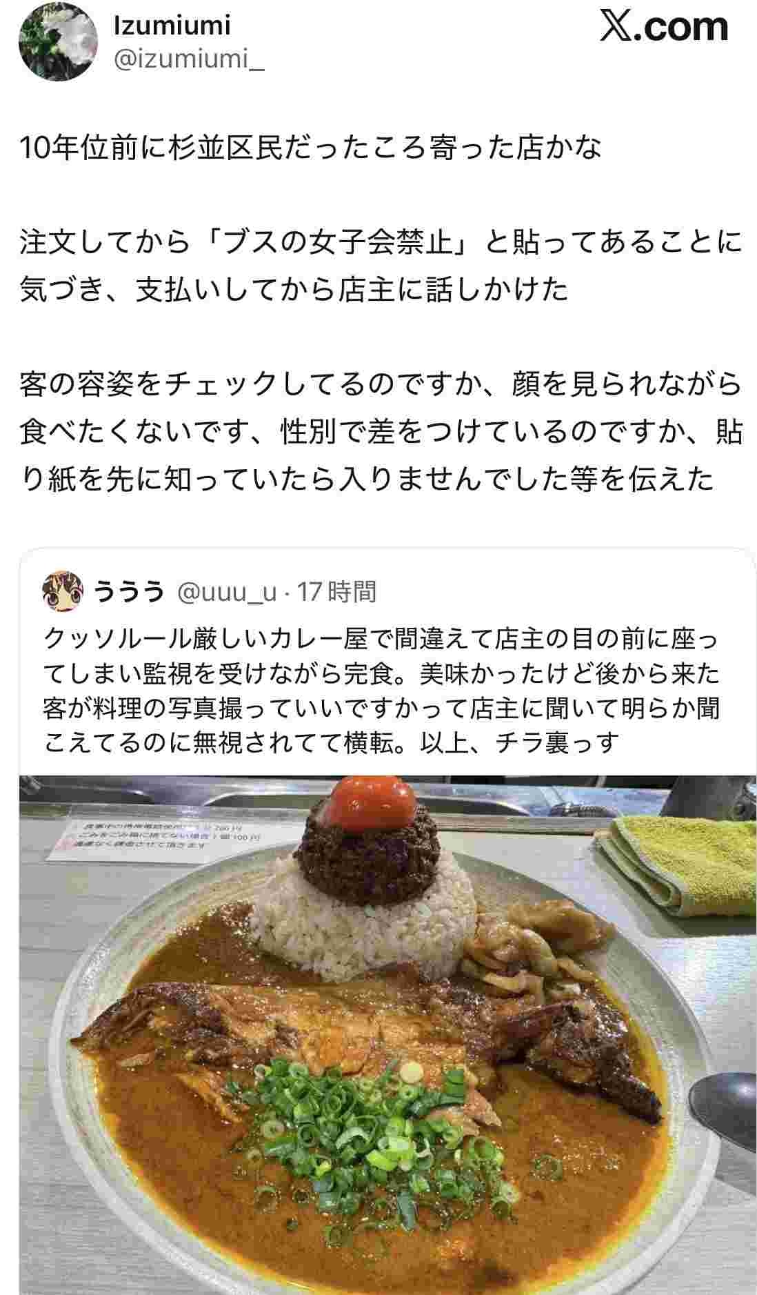 - カレーの写真はOKって書かれてるから黙って撮ればいいってことでしょ