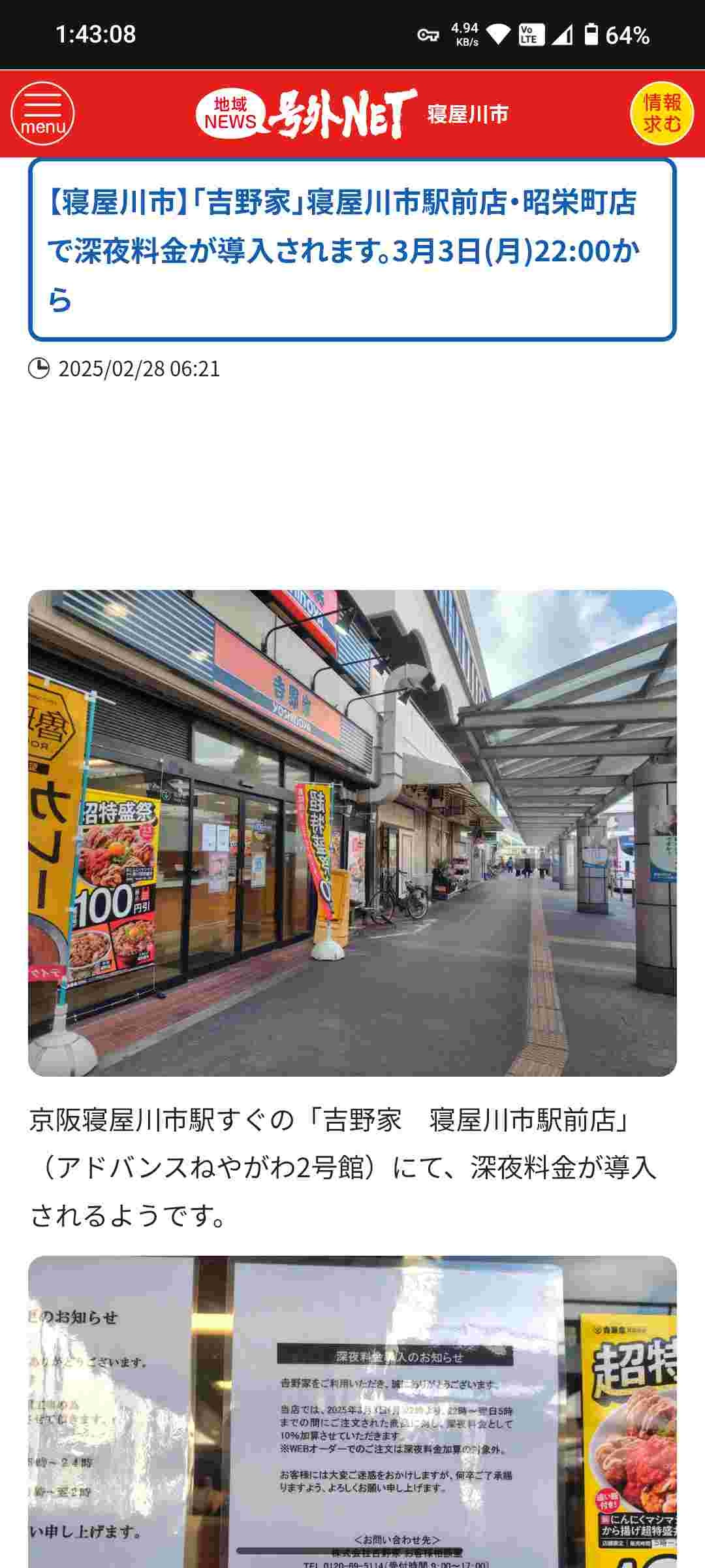 あれ?吉野家って深夜料金なんて取ってたっけ?