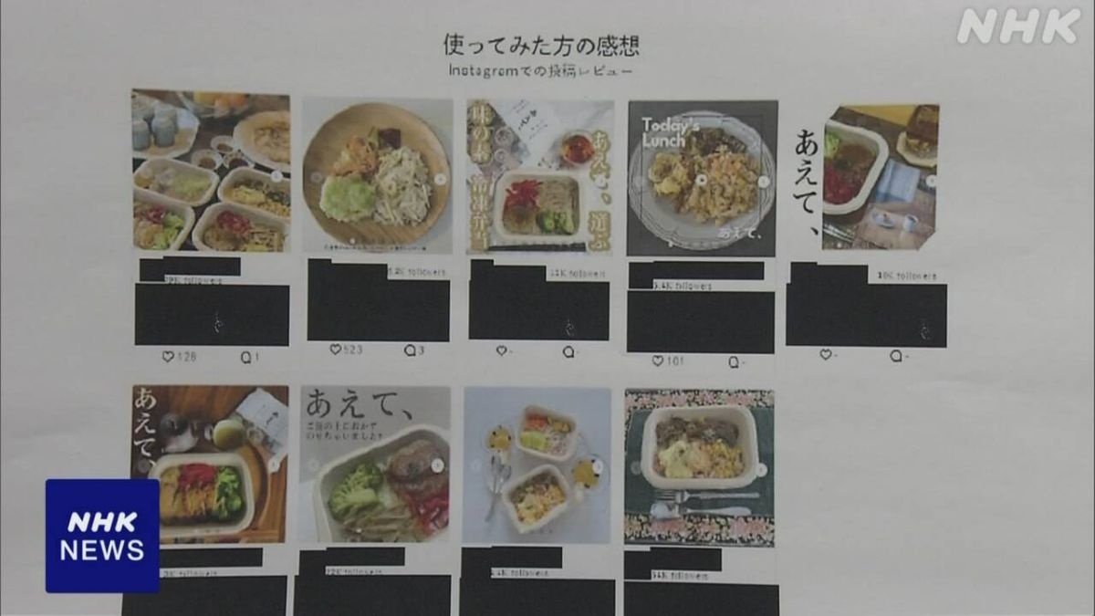- 大手食品メーカーの「味の素」などが、冷凍弁当の宅配サービスで、景品表示法で禁止されているステルスマーケティングを行っていた疑いがあることが、消費者庁の調査で分かりました。会社側は、改善計画を提出し、再発防止を進めるとしています。