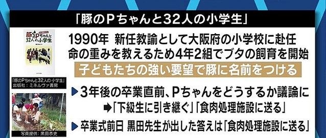 食肉にすることを説明せずに名前までつけて可愛がらせて、生徒たちが反対したのに肉にするとか、こんなの教師のエゴだろ