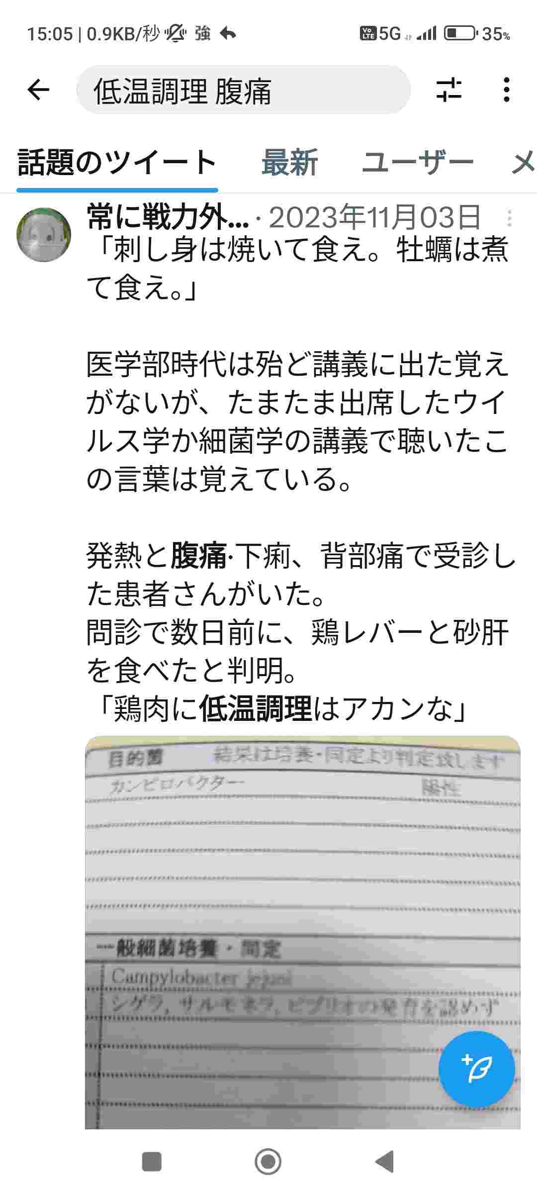 - 低温調理でお腹壊した人のXの書き込み見た