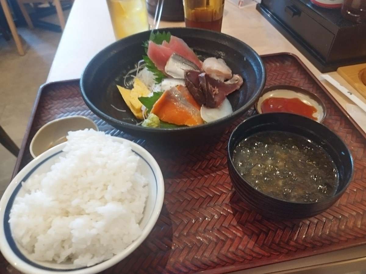 - んで、豊洲直送お刺身定食のお出座しだわさ♬