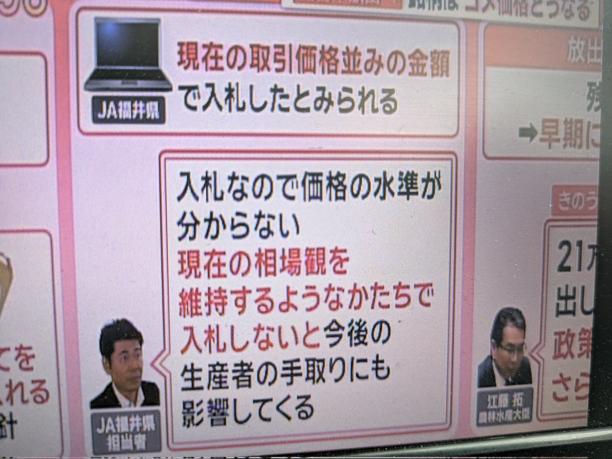 消費市場における相場が高騰してしまったから引き下げるために入札を行なったんやろ?なのに今の相場で落札したら意味ないやん