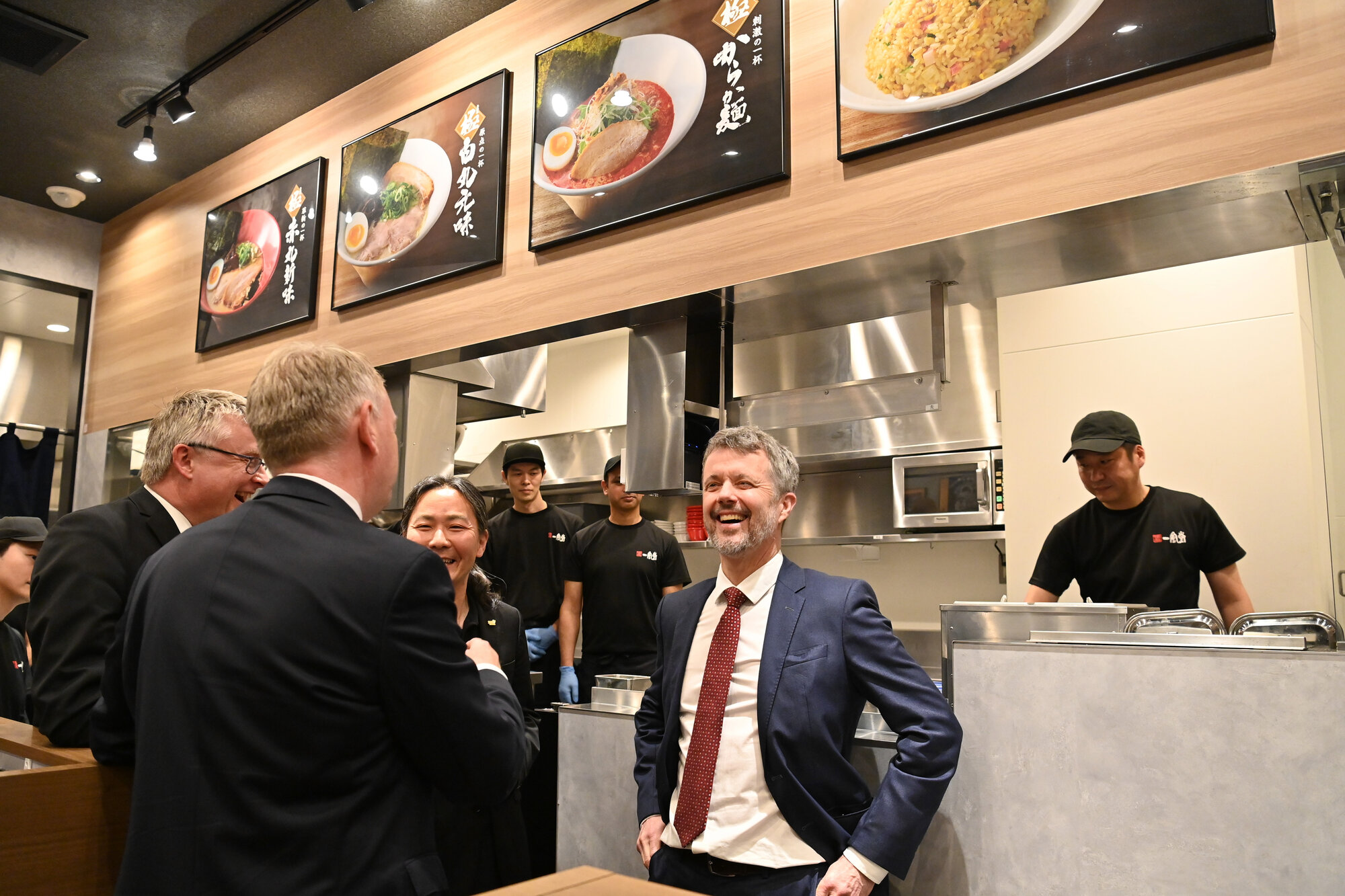 国王に即位後、初めて日本を公式訪問したデンマークのフレデリック10世が23日、食料安全保障の会議やセミナーに出席した後、東京・銀座に赴いた。向かった先は、あの大手ラーメンチェーン「一風堂」だった。