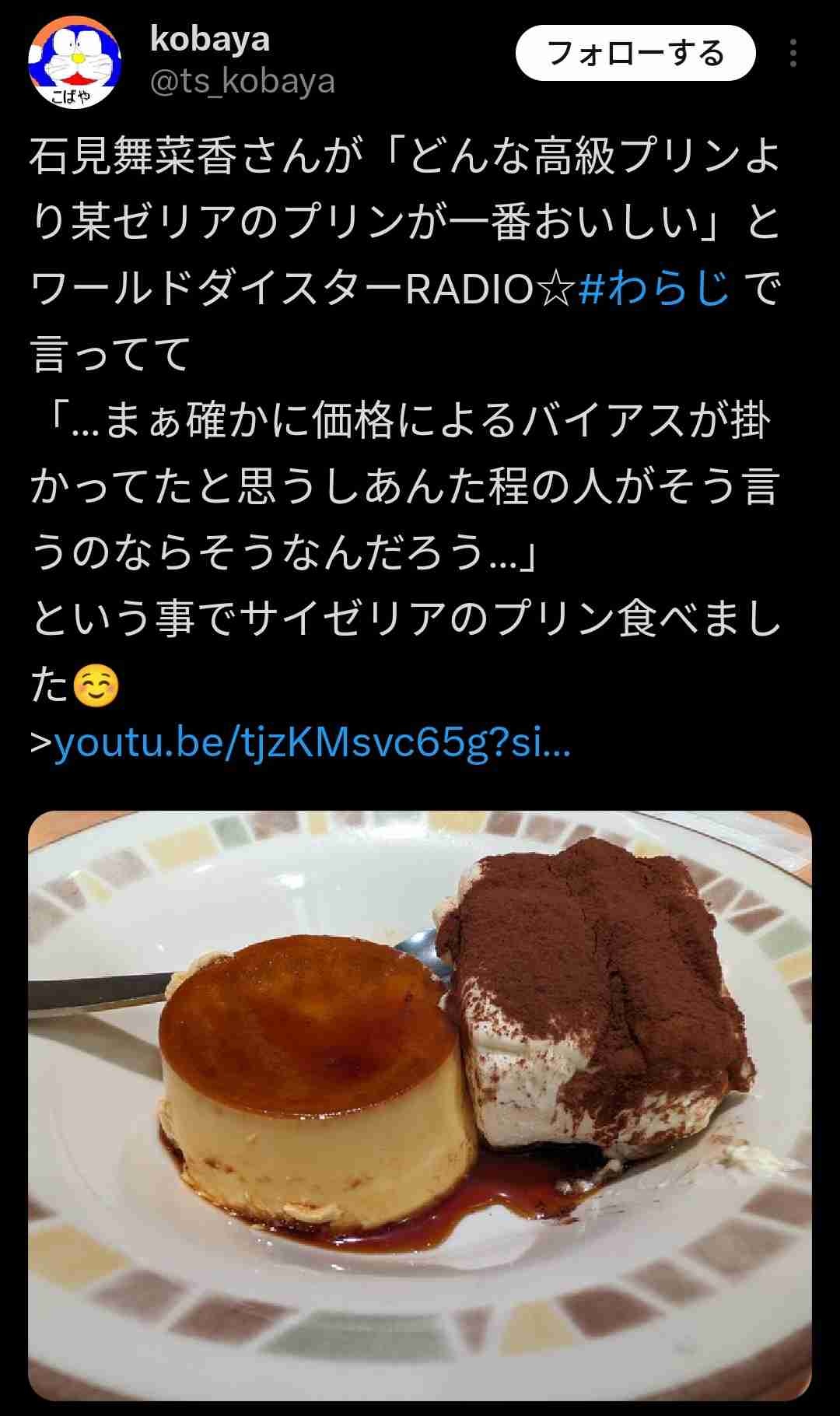 声優・石見舞菜香ちゃん「どんな高級プリンよりもサイゼリヤのプリンが一番おいしい!!!」