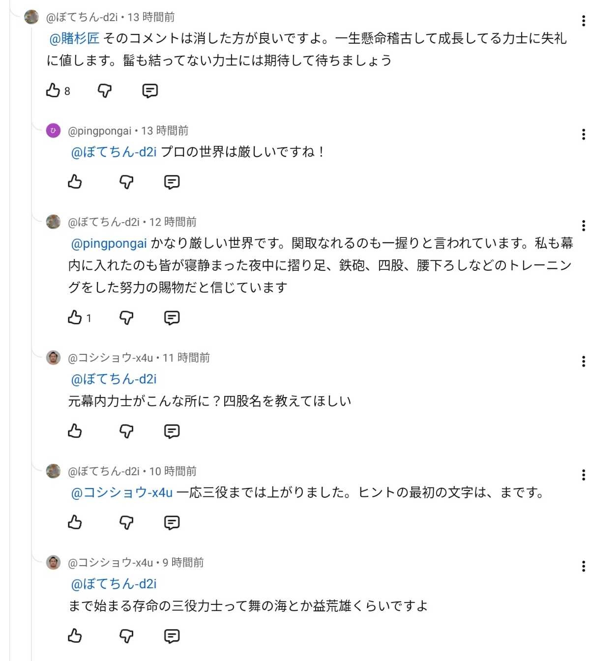 相撲のYouTube見てたらコメ欄に三役力士がいた