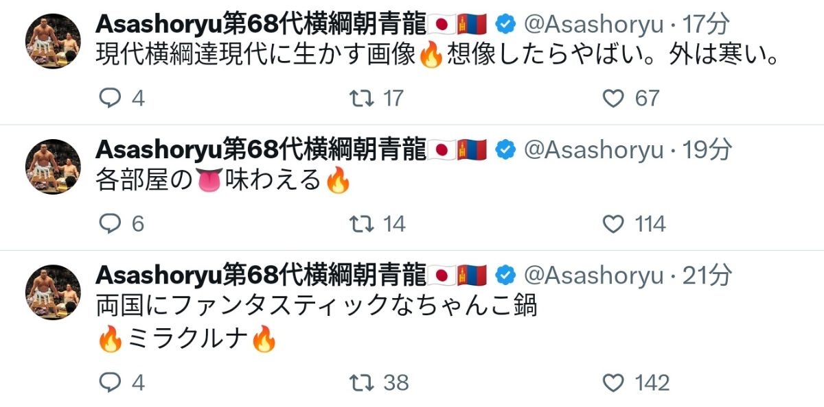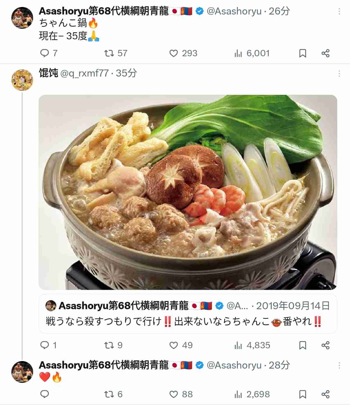 - 朝青龍の過去ポストにちゃんこ鍋の写真貼るのが急に流行る