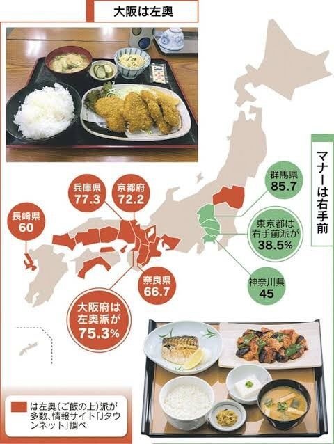 - ごはんや味噌汁は左手で持つんやし関西式が合理的よね